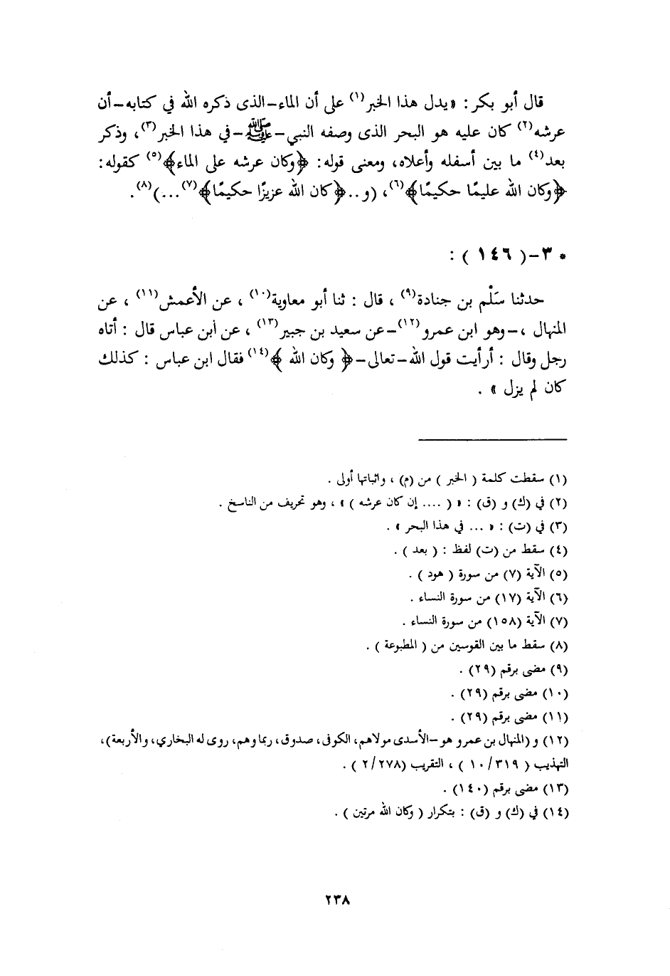 حَدَّثَنَا سَلْمُ بْنُ جُنَادَةَ، قَالَ: ثنا أَبُو مُعَاوِيَةَ، عَنِ الْأَعْمَشِ، عَنِ الْمِنْهَالِ وَهُوَ ابْنُ عَمْرٍو، عَنْ سَعِيدِ بْنِ جُبَيْرٍ، عَنِ ابْنِ عَبَّاسٍ، قَالَ: أَتَاهُ رَجُلٌ، وَقَالَ: أَرَأَيْتَ قَوْلَ اللَّهِ تَعَالَى: {§وَكَانَ اللَّهُ} [النساء: 17] ، فَقَالَ ابْنُ عَبَّاسٍ: كَذَلِكَ لَمْ يَزَلْ
