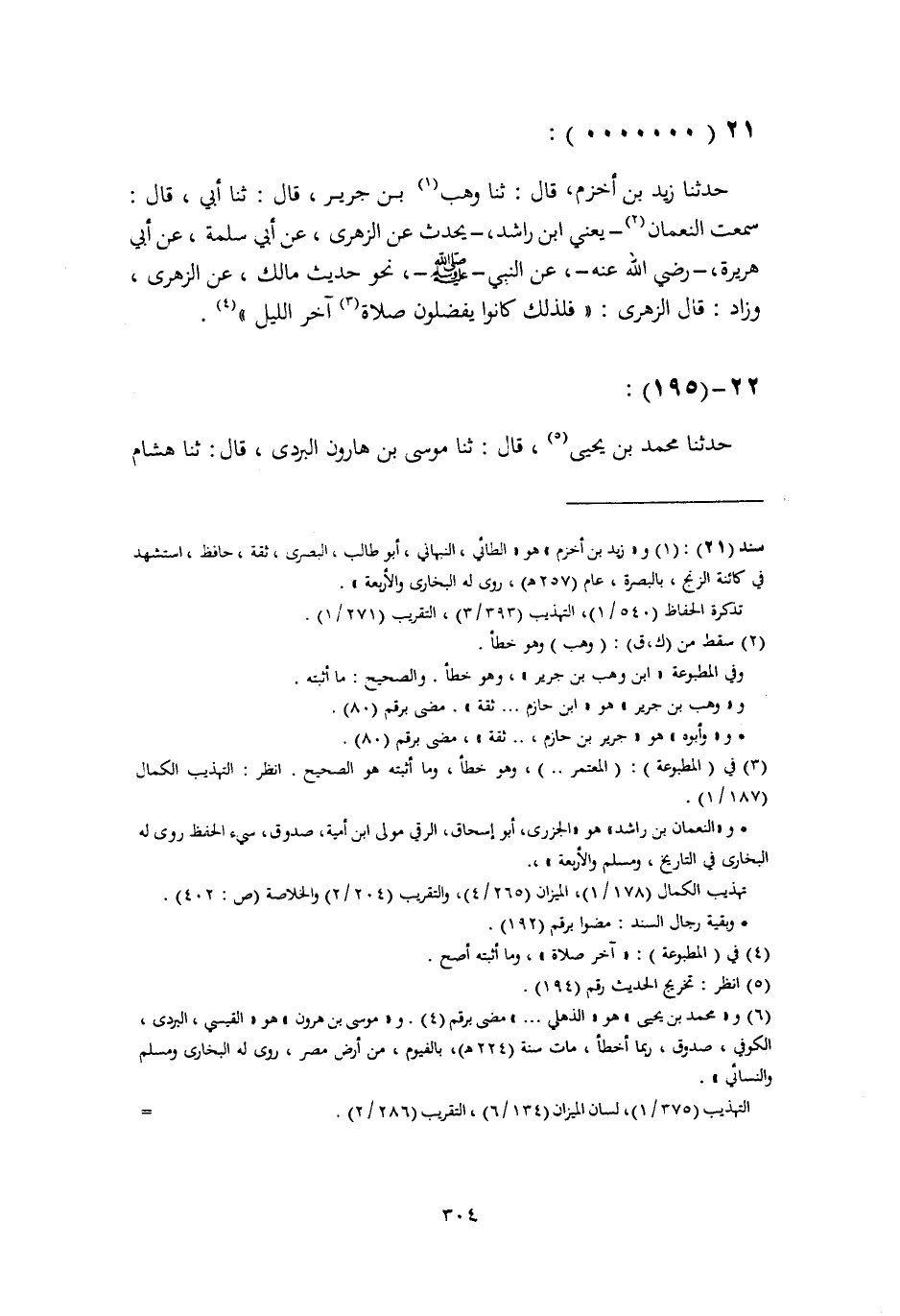 حَدَّثَنَا مُحَمَّدُ بْنُ يَحْيَى، قَالَ: ثنا مُوسَى بْنُ هَارُونَ الْبُرْدِيُّ، قَالَ: ثنا هِشَامُ -[305]- بْنُ يُوسُفَ، عَنْ مَعْمَرٍ، عَنْ سُهَيْلِ بْنِ أَبِي صَالِحٍ، عَنْ أَبِيهِ، عَنْ أَبِي هُرَيْرَةَ، عَنِ النَّبِيِّ صَلَّى اللهُ عَلَيْهِ وَسَلَّمَ قَالَ: «§يَنْزِلُ رَبُّنَا تَبَارَكَ وَتَعَالَى كُلَّ لَيْلَةٍ إِذَا مَضَى ثُلُثُ اللَّيْلِ الْأَوَّلُ يَقُولُ أَنَا الْمَلِكُ، أَنَا الْمَلِكُ، مَنْ ذَا الَّذِي يَسْأَلُنِي فَأُعْطِيَهُ؟ مَنْ ذَا الَّذِي يَدْعُونِي فَأَسْتَجِيبَ لَهُ؟ مَنْ ذَا الَّذِي يَسْتَغْفِرُنِي فَأَغْفِرَ لَهُ؟ فَلَا يَزَالُ كَذَلِكَ إِلَى الْفَجْرِ» . حَدَّثَنَا مُحَمَّدُ بْنُ عَبْدِ الْأَعْلَى الصَّنْعَانِيُّ قَالَ: ثنا الْمُعْتَمِرُ قَالَ: سَمِعْتُ عُبَيْدَ اللَّهِ، عَنْ سَعِيدِ بْنِ أَبِي سَعِيدٍ، عَنْ أَبِيهِ، عَنْ أَبِي هُرَيْرَةَ رَضِيَ اللَّهُ عَنْهُ -[306]-. وَحَدَّثَنَا مُحَمَّدُ بْنُ بَشَّارٍ، وَعَمْرُو بْنُ عَلِيٍّ، وَيَحْيَى بْنُ حَكِيمٍ قَالَ يَحْيَى عَنْ عُبَيْدِ اللَّهِ قَالَ: أَخْبَرَنِي سَعِيدُ بْنُ أَبِي سَعِيدٍ الْمَقْبَرِيُّ، عَنْ أَبِي هُرَيْرَةَ رَضِيَ اللَّهُ عَنْهُ. وَحَدَّثَنَا يَحْيَى بْنُ حَكِيمٍ، قَالَ: ثنا عَبْدُ الْوَهَّابِ بْنُ عَبْدٍ الْمَجِيدِ قَالَ: ثنا هِشَامُ بْنُ حَسَّانَ، وَعُبَيْدُ اللَّهِ، عَنْ سَعِيدٍ، عَنْ أَبِي هُرَيْرَةَ رَضِيَ اللَّهُ عَنْهُ -[307]-. وَحَدَّثَنَا يَحْيَى بْنُ حَكِيمٍ قَالَ: ثنا ابْنُ أَبِي عَدِيٍّ، عَنْ مُحَمَّدِ بْنِ إِسْحَاقَ قَالَ: قَالَ: أَخْبَرَنِي سَعِيدُ بْنُ أَبِي سَعِيدٍ، عَنْ عَطَاءٍ، عَنْ أَبِي هُرَيْرَةَ. وَثنا أَبُو مُوسَى قَالَ: ثنا ابْنُ أَبِي عَدِيٍّ، عَنْ هِشَامٍ، عَنْ يَحْيَى بْنِ أَبِي كَثِيرٍ، عَنْ أَبِي جَعْفَرٍ، أَنَّهُ سَمِعَ أَبَا هُرَيْرَةَ يَقُولُ: حَدَّثَنَا مُحَمَّدُ بْنُ عَبْدِ الْأَعْلَى قَالَ: ثنا خَالِدٌ يَعْنِي ابْنَ الْحَارِثِ قَالَ: ثنا -[308]- هِشَامٌ , عَنْ يَحْيَى بْنِ أَبِي كَثِيرٍ، عَنْ أَبِي جَعْفَرٍ أَنَّهُ سَمِعَ أَبَا هُرَيْرَةَ يَقُولُ. وَحَدَّثَنَا مُحَمَّدُ بْنُ يَحْيَى قَالَ: ثنا مُحَاضِرٌ قَالَ: ثنا الْأَعْمَشُ، عَنْ أَبِي صَالِحٍ، ذَكَرَهُ عَنْ أَبِي سَعِيدٍ الْخُدْرِيِّ، أَوْ عَنْ أَبِي هُرَيْرَةَ. وَأَبِي إِسْحَاقَ، وَحَبِيبٍ، عَنِ الْأَغَرِّ، عَنْ أَبِي هُرَيْرَةَ. وَحَدَّثَنَا أَبُو يَحْيَى مُحَمَّدُ بْنُ عَبْدِ الرَّحِيمِ الْبَزَّارُ قَالَ: ثنا أَبُو بَدْرٍ شُجَاعُ -[309]- بْنُ الْوَلِيدِ قَالَ: ثنا سَعِيدُ بْنُ سَعِيدٍ قَالَ: سَمِعْتُ سَعِيدَ ابْنَ مَرْجَانَةَ، عَنْ أَبِي هُرَيْرَةَ رَضِيَ اللَّهُ عَنْهُ. وَحَدَّثَنَا مُحَمَّدُ بْنُ يَحْيَى، وَإِسْحَاقُ بْنُ وَهْبٍ الْوَاسِطِيُّ قَالَا: ثنا مُحَاضِرٌ قَالَ: ثنا سَعْدٌ يَعْنِي ابْنَ سَعِيدِ بْنِ قَيْسٍ وَقَالَ إِسْحَاقُ: ثنا سَعْدُ بْنُ سَعِيدٍ الْأَنْصَارِيُّ قَالَ: ثنا سَعِيدُ بْنُ أَبِي سَعِيدِ ابْنِ مَرْجَانَةَ قَالَ: سَمِعْتُ أَبَا هُرَيْرَةَ رَضِيَ اللَّهُ عَنْهُ يَقُولُ. هَكَذَا نَسَبَاهُ سَعِيدَ بْنَ أَبِي سَعِيدِ ابْنِ مَرْجَانَةَ -[310]-. وَحَدَّثَنَا مُحَمَّدُ بْنُ رَافِعٍ قَالَ: ثنا مُحَمَّدُ بْنُ إِسْمَاعِيلَ بْنِ أَبِي فُدَيْكٍ قَالَ: حَدَّثَنَا ابْنُ أَبِي ذِئْبٍ، عَنِ الْقَاسِمِ بْنِ عَبَّاسٍ، عَنْ نَافِعِ بْنِ جُبَيْرٍ وَهُوَ ابْنُ مُطْعِمٍ، عَنْ أَبِي هُرَيْرَةَ رَضِيَ اللَّهُ عَنْهُ. رَفَعُوهُ جَمِيعًا إِلَى النَّبِيِّ صَلَّى اللهُ عَلَيْهِ وَسَلَّمَ قَالَ بَعْضُهُمْ: عَنِ النَّبِيِّ صَلَّى اللهُ عَلَيْهِ وَسَلَّمَ، وَقَالَ بَعْضُهُمْ: قَالَ رَسُولُ اللَّهِ صَلَّى اللهُ عَلَيْهِ وَسَلَّمَ، فَذَكَرُوا جَمِيعًا الْحَدِيثَ فِي نُزُولِ الرَّبِّ جَلَّ وَعَلَا، كُلَّ لَيْلَةٍ إِلَى سَمَاء