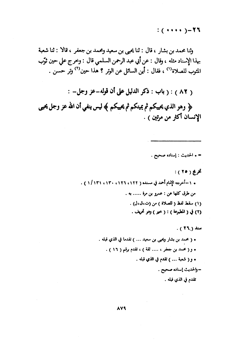 §بَابُ ذِكْرِ الدَّلِيلِ عَلَى أَنَّ قَوْلَهُ عَزَّ وَجَلَّ {وَهُوَ الَّذِي أَحْيَاكُمْ} [الحج: 66] ثُمَّ يُمِيتُكُمْ ثُمَّ يُحْيِيكُمْ لَيْسَ يَنْفِي أَنَّ اللَّهَ عَزَّ وَجَلَّ يُحْيِي الْإِنْسَانَ أَكْثَرَ مِنْ مَرَّتَيْنِ