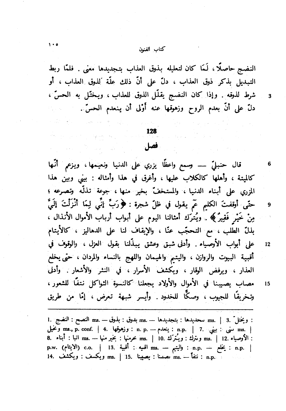 قال حنبلي ــــــ وسمع واعظًا يزري على الدنيا ونعيمها، ويزعم أنها كالميتة، وأهلها كالكلاب عليها، وأغرق في هذا وأمثاله: بيني وبين هذا المزري على أبناء الدنيا، والمستخف بخير منها، جوعة تذله وتصرعه؛ حتى أوقفت الكليم عم يقول في ظل شجرة: {رب إني لما أنزلت إلي من خيرٍ فقير}. ويترك أمثالنا اليوم على أبواب أرباب الأموال الأنذال، بذل الطلب، مع التحجب عنا، والإيقاف لنا على الدهاليز، كالأيتام على أبواب الأوصياء. وأدنى شبق وعشق يبذلنا بقول العزل، والوقوف في أقبية البيوت والروازن، واليتيم والهيمان واللهج بالنساء والمردان، حتى يخلع العذار، ويرفض الوقار، ويكشف الأسرار، في النثر والأشعار. وأدنى مصاب يصيبنا في الأموال والأولاد يجعلنا كالنسوة الثواكل نتفًا للشعور، وتخريقًا للجيوب، وصكا للخدود. وأيسر شبهة تعرض، إما من طريق