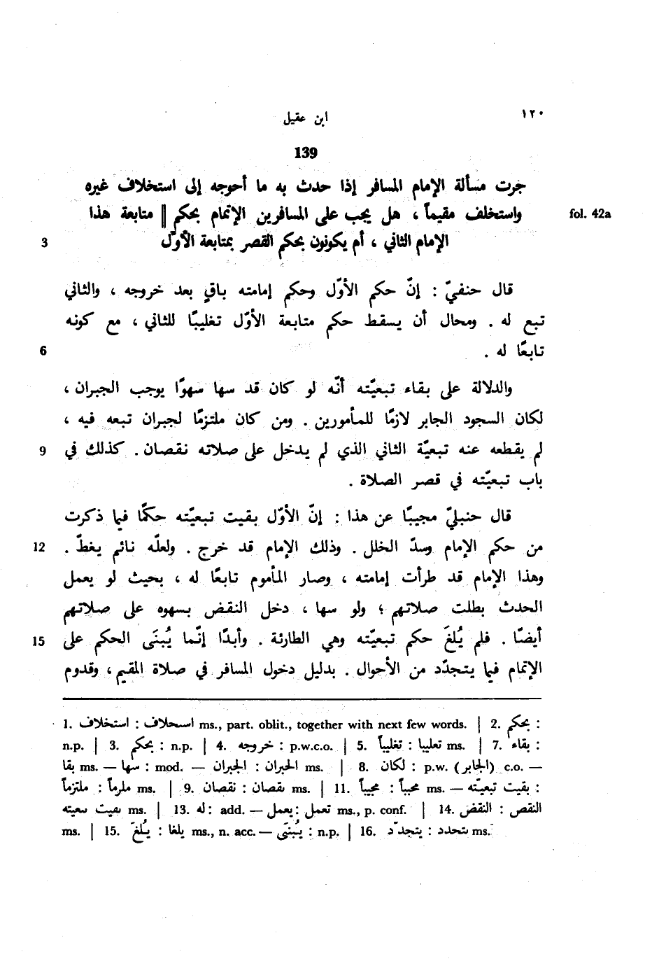 139 - جرت مسألة الإمام المسافر إذا حدث به ما أحوجه إلى استخلاف غيره