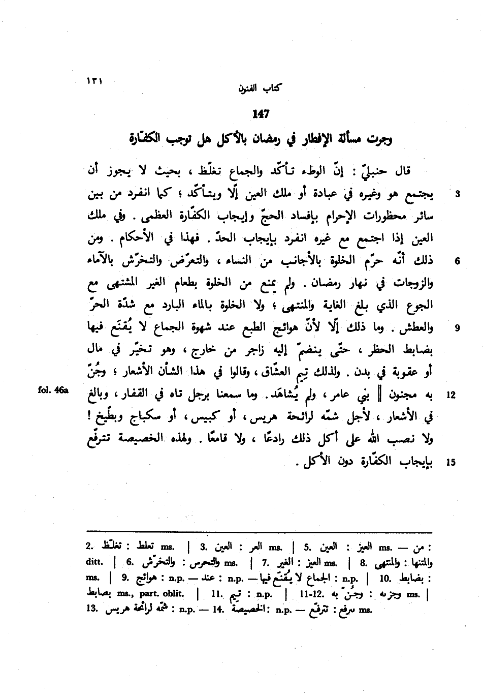 147 - وجرت مسألة الإفطار في رمضان بالأكل هل توجب الكفارة