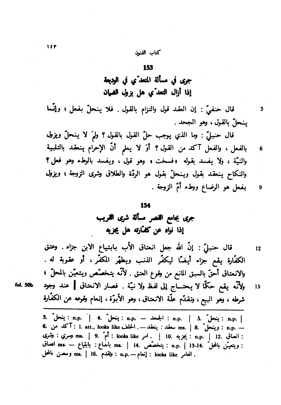 قال حنبلي: وما الذي يوجب حل القول بالقول؟ ولم لا ينحل ويزول بالفعل، والفعل آكد من القول؟ أو لا يعلم أن الإحرام ينعقد بالتلبية والنية، ولا يفسد بقوله ((فسخت)) وهو قول، ويفسد بالوطء وهو فعل؟ والنكاح ينعقد بقول وينحل بقول هو الردة والطلاق وشرى الزوجة؛ ويزول بفعل هو الرضاع ووطء أم الزوجة.