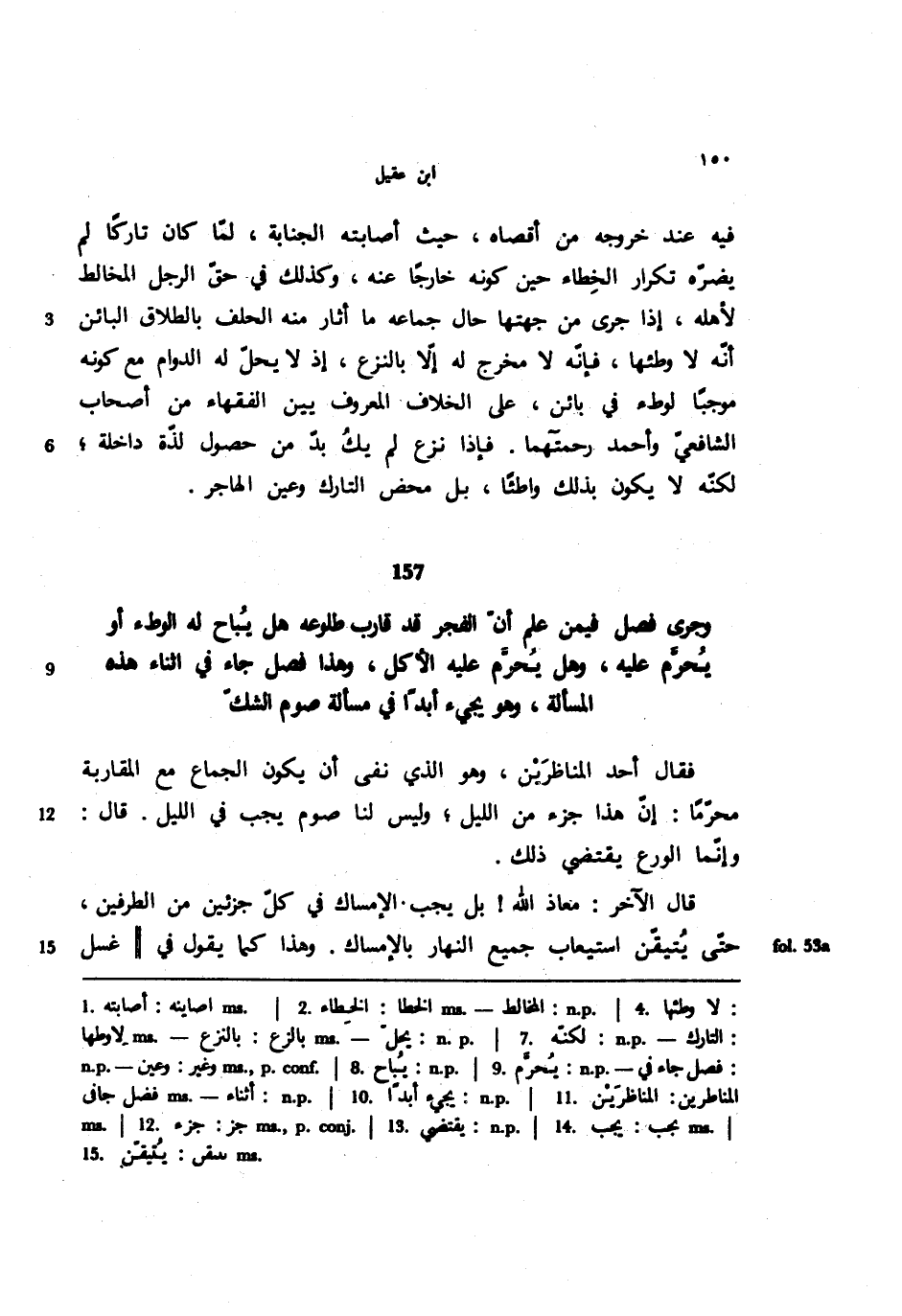 157 - وجرى فصل فيمن علم أن الفجر قد قارب طلوعه هل يباح له الوطء أو