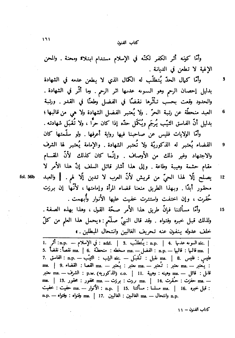 وأما الولايات فليس عن صاحبنا فيها رواية أعرفها. ولو سلمتها كان القضاء يعتبر له الذكورية ولا تعتبر الشهادة. والإمامة يعتبر لها الشرف والاجتهاد وغير ذلك من الأوصاف. وإنما كان كذلك لأن المقام مقام حشمة وهيبة وطاعة. وإلى هذا أشار قائل السلف إن هذا الأمر لا يصلح إلا لهذا الحي من قريش لأن العرب لا تدين إلا لهم. || والعبد محقور أبدًا. وبهذا الطريق منعنا قضاء المرأة وإمامتها، لأنها إن برزت حقرت، وإن اختفت واستترت خفيت عليها الأنوار وأبهمت.