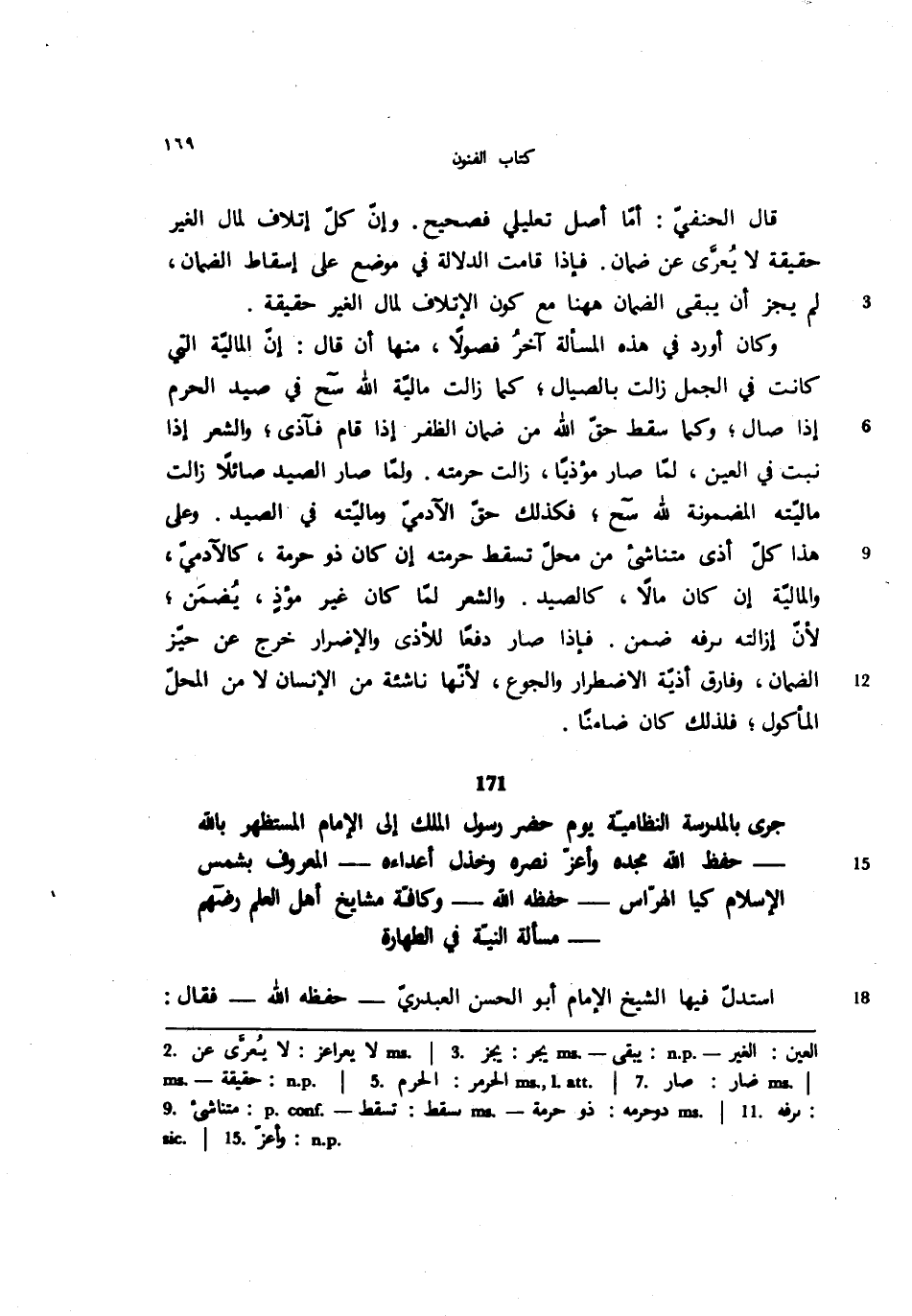 171 - جرى بالمدرسة النظامية يوم حضر رسول الملك إلى الإمام المستظهر بالله-