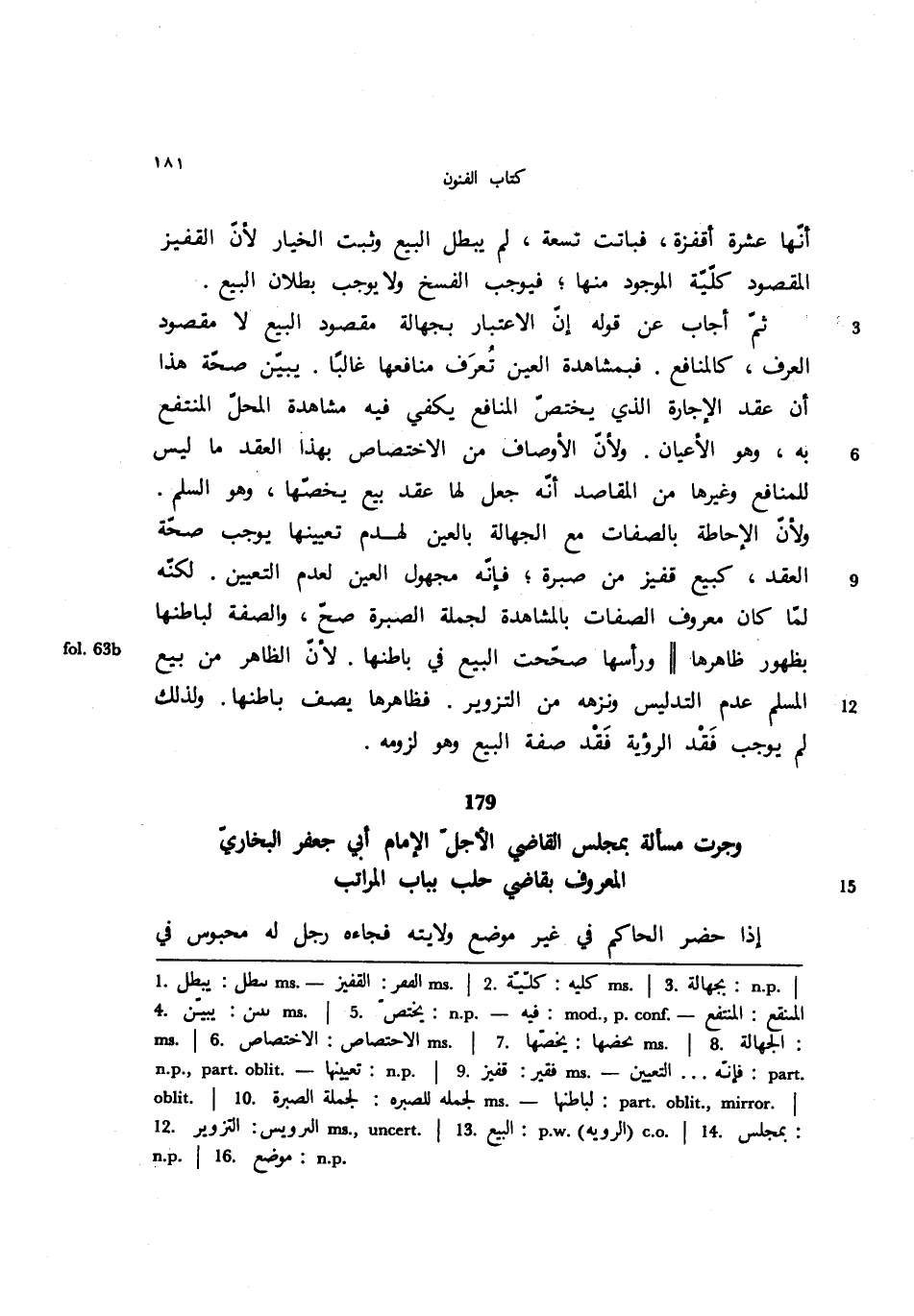 179 - وجرت مسألة بمجلس القاضي الأجل الإمام أبي جعفر البخاري
