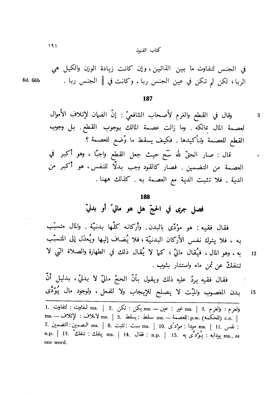 187 - وقال في القطع والغرم لأصحاب الشافعي: إن الضمان لإتلاف الأموال لعصمة المال بمالكه. وما زالت عصمة المالك بوجوب القطع. بل وجوب القطع للعصمة وتأكيدها. فكيف يسقط ما وضع للعصمة؟