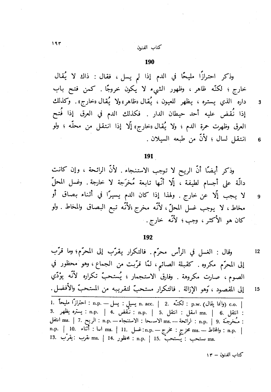 191 - وذكر أيضًا أن الريح لا توجب الاستنجاء. لأن الرائحة، وإن كانت دالة على أجسام لطيفة، إلا أنها تابعة مخرجة لا خارجة. وغسل المحل لا يجب إلا عن خارج. ولهذا إذا كان الدم يسيرًا في أثناء بصاق أو مخاط، لا يوجب غسل المحل، لأنه مخرج؛ لأنه تبع البصاق والمخاط. ولو كان هو الأكثر، وجب؛ لأنه خارج.
