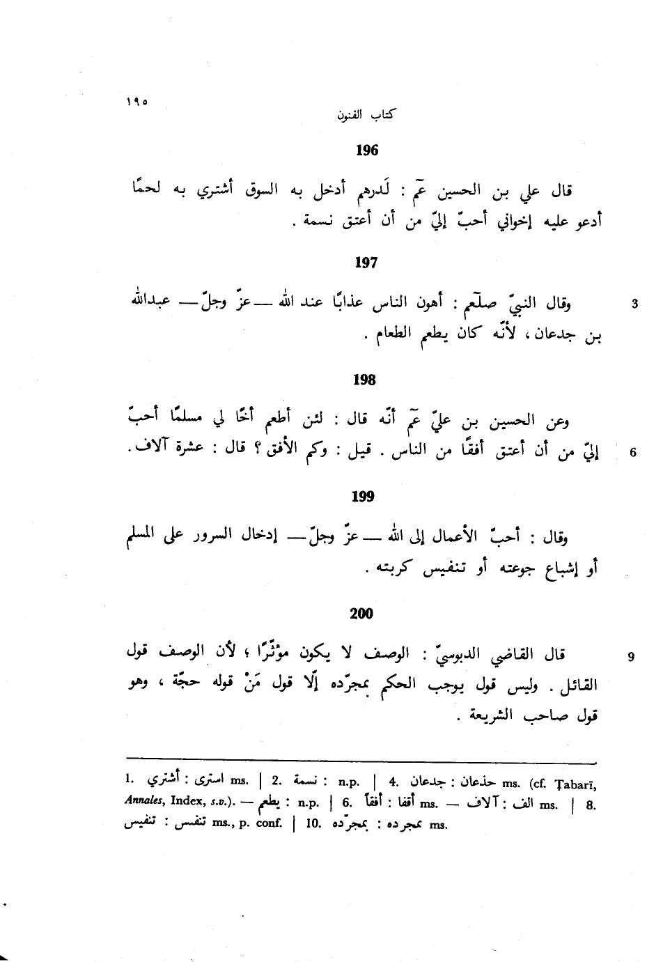 196 - قال علي بن الحسين عم: لدرهم أدخل به السوق أشتري به لحمًا أدعو عليه إخواني أحب إلي من أن أعتق نسمة.
