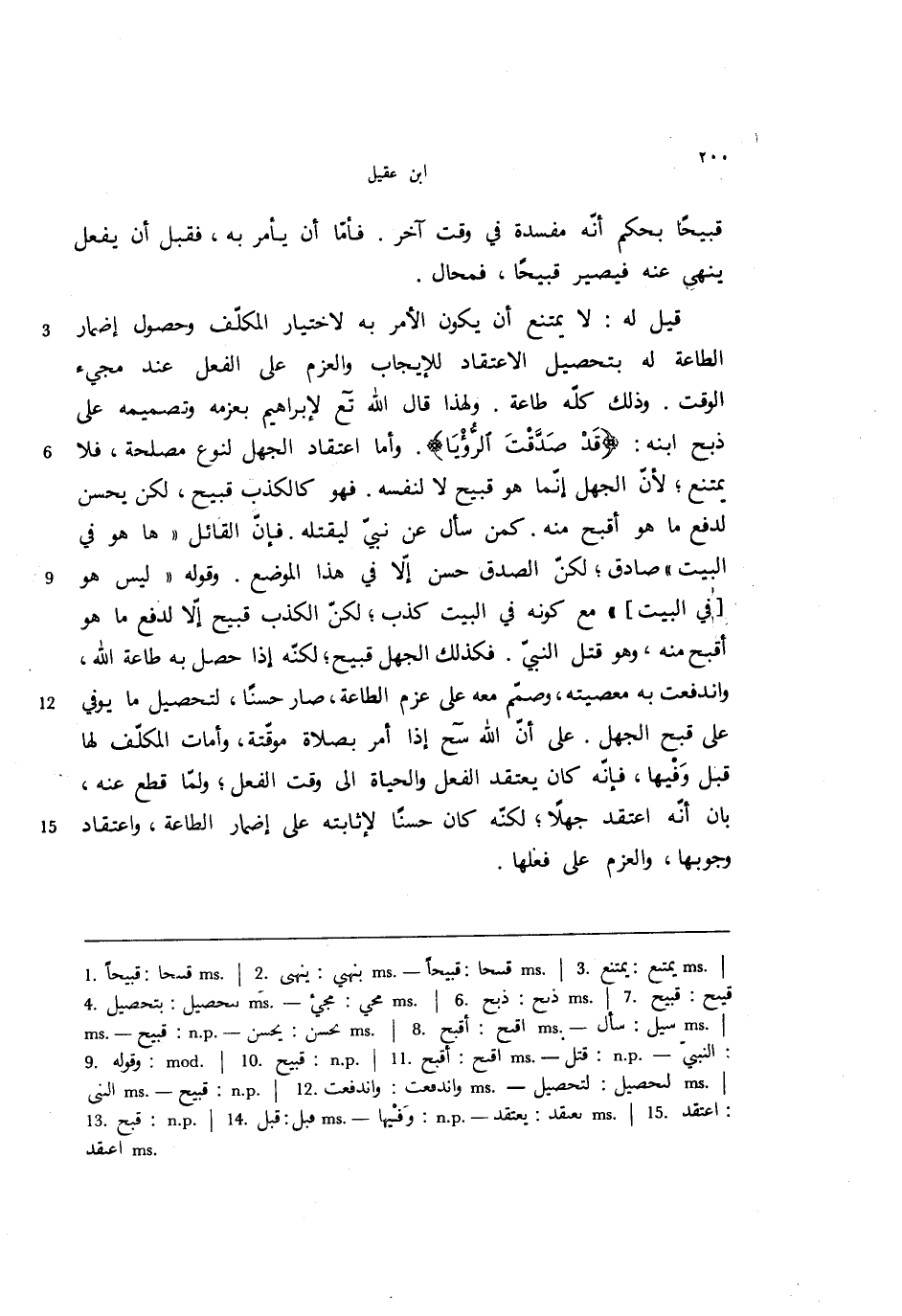 قيل له: لا يمتنع أن يكون الأمر به لاختيار المكلف وحصول إضمار الطاعة له بتحصيل الاعتقاد للإيجاب والعزم على الفعل عند مجيء الوقت. وذلك كله طاعة. ولهذا قال الله تع لإبراهيم بعزمه وتصميمه على ذبح ابنه: {قد صدقت الرؤيا}. وأما اعتقاد الجهل لنوع مصلحة، فلا يمتنع؛ لأن الجهل إنما هو قبيح لا لنفسه. فهو كالكذب قبيح، لكن يحسن لدفع ما هو أقبح منه. كمن سأل عن نبي ليقتله. فإن القائل ((ها هوفي البيت)) صادق؛ لكن الصدق حسن إلا في هذا الموضع. وقوله ((ليس هو [في البيت])) مع كونه في البيت كذب؛ لكن الكذبقبيح إلا لدفع ما هو أقبح منه، وهو قتل النبي، فكذلك الجهل قبيح؛ لكنه إذا حصل به طاعة الله، واندفعت به معصيته، وصمم معه على عزم الطاعة، صار حسنًا، لتحصيل ما يوفي على قبح الجهل. على أن الله سح إذا أمر بصلاة موقتة، وأمات المكلف لها قبل وفيها، فإنه كان يعتقد الفعل والحياة إلى وقت الفعل؛ ولما قطع عنه، بإن أنه اعتقد جهلًا؛ لكنه كان حسنًا لإثابته على إضمار الطاعة، واعتقاد وجوبها، والعزم على فعلها.