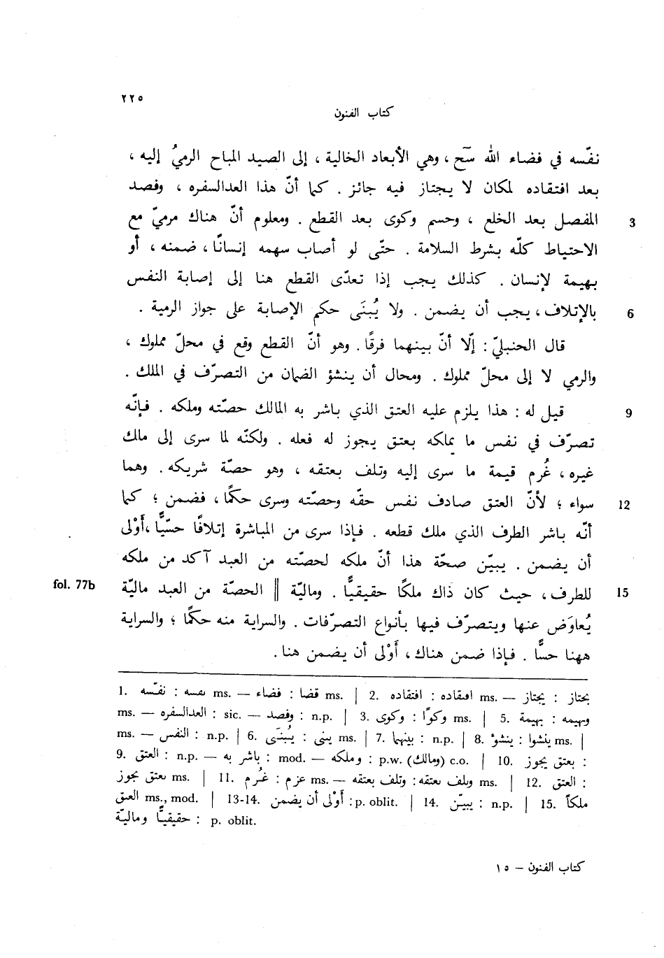 نفسه في فضاء الله سح، وهي الأبعاد الخالية، إلى الصيد المباح الرمي إليه، بعد افتقاده لمكان لا يجتاز فيه جائز. كما أن هذا العد لسفره، وفصد المفصل بعد الخلع، وحسم وكوى بعد القطع. ومعلوم أن هناك مرمي مع الاحتياط كله بشرط السلامة. حتى لو أصاب سهمه إنساناً، ضمنه، أو بهيمة لإنسان. كذلك يجب إذا تعدى القطع هنا إلى إصابة النفس بالإتلاف، يجب أن يضمن. ولا يبنى حكم الإصابة على جواز الرمية.
