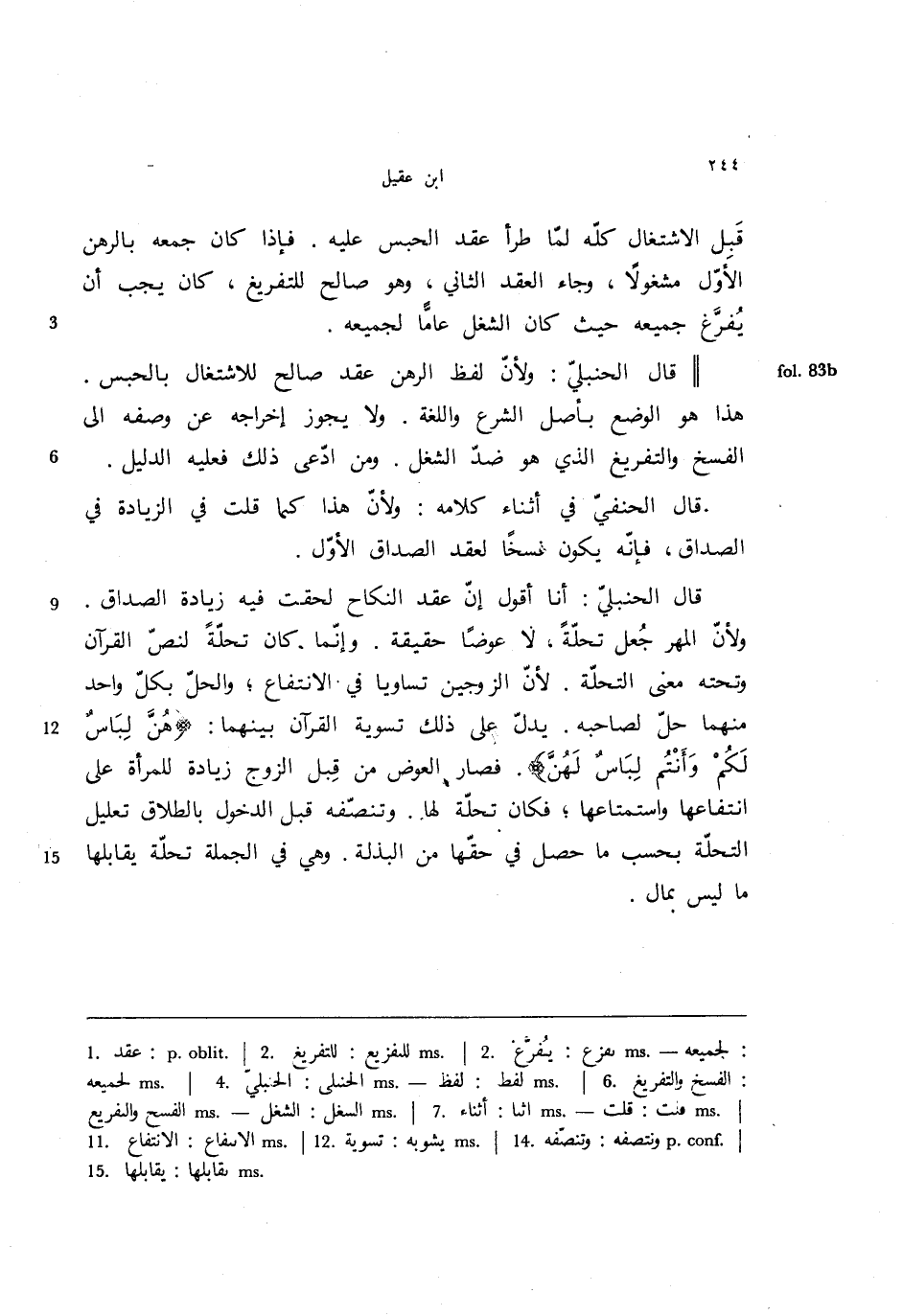 قال الحنبلي: أنا أقول إن عقد النكاح لحقت فيه زيادة الصداق. ولأن المهر جعل تحلة، لا عوضاً حقيقة. وإنما كان تحلة لنص القرآن وتحته معنى التحلة. لأن الزوجين تساوياً في الانتفاع؛ والحل بكل واحد منهما حل لصاحبه. يدل على ذلك تسوية القرآن بينهما {هن لباس لكم وأنتم لباس لهن} فصار العوض من قبل الزوج زيادة للمرأة على انتفاعها واستمتاعها؛ فكان تحلة لها. وتنصفه قبل الدخول بالطلاق تعليل التحلة بحسب ما حصل في حقها من البذلة. وهي في الجملة تحلة يقابلها ما ليس بمال.