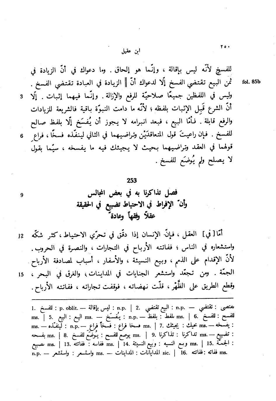 أما [في] العقل، فإن الإنسان إذا دقق في تحري الاحتياط، كثر شكه واستشعاره في الناس؛ ففاتته الأرباح في التجارات، والنصرة في الحروب. لأن الإقدام على الذمم، وبيع النسيئة، والأسفار، أسباب لمصادفة الأرباح الجمة. ومن تجعد واستشعر الجنايات في المداينات، والغرق في البحر، وقطع الطريق على الظهر، قلت نهضاته، فوقفت تجاراته، ففاتته الأرباح.