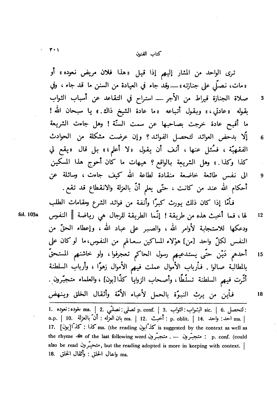 فأما إذا كانت يورث كبرا وأنفة من فوائد الشرع ومقامات الطلب لها، فما أخبث هذه من طريقةّ! إنما الطريقة للرجال هي رياضة ||النفوس ودعكها للاستجابة لأوامر الله، والصبر على عباد الله، وإعطاء الحق من النفس لكل واحد [من] هؤلاء المساكين سعالهم من النفوس، ما لو كان على أحدهم دين حتى يستدعيهم رسول الحاكم تعجرفوا، ولو خاشنهم المستحق بالمطالبة صالوا. فأرباب الأموال عملت فيهم الأموال زهوا، وأرباب السلطنة أثرت فيهم السلطنة تسلطا، وأصحاب الزوايا كذا [بون]، والعلماء متجبرون.