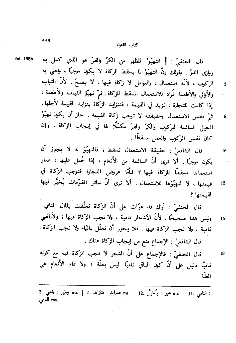 قال الحنفي: فالإجماع على أن الشجر لا تجب الزكاة فيه مع كونه ناميًا دليل على أن كون الباقي ناميًا وليس بعلة؛ ولا نماء الأنعام هي العلة.