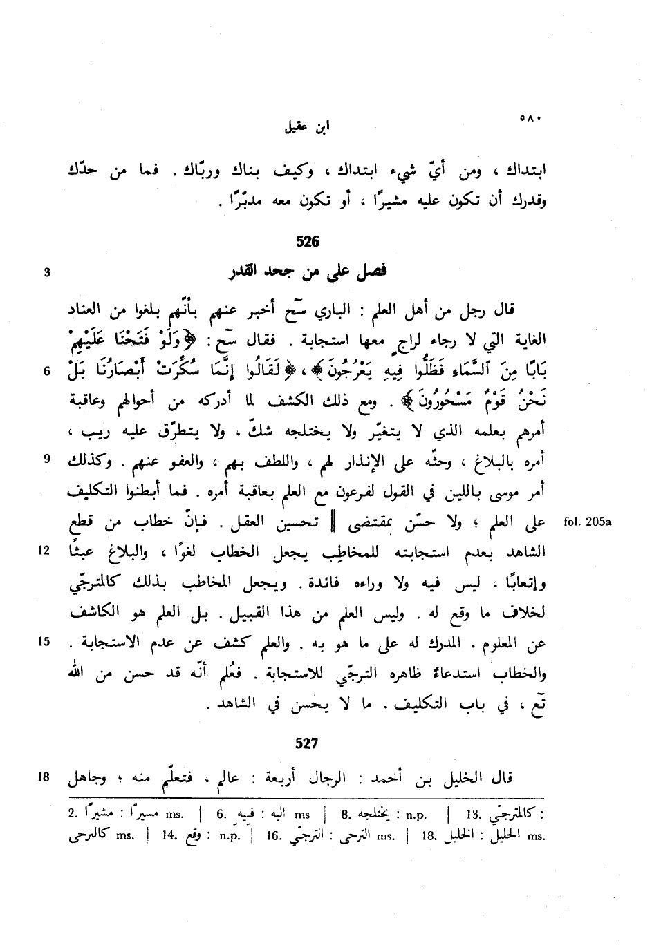 قال رجل من أهل العلم: الباري سبحانه وتعالى أخبر عنهم بأنهم بلغوا من العناد الغاية التي لا رجاء لراج معها استجابة. فقال سبحانه وتعالى: (ولو فتحنا عليهم بابا من السماء فظلوا فيه يعرجون) , (لقالوا إنما سكرت أبصارنا بل نحن قوم مسحرون). ومع ذلك الكشف لما أدركه من أحوالهم وعاقبة أمرهم بعلمه الذي لا يتغير ولا يختلجه شك, ولا يتطرق عليه ريب, أمره بالبلاغ, وحثه على الإنذار لهم, واللطف بهم, والعفو عنهم, وكذلك أمر موسى باللين في القول لفرعون مع العلم بعاقبة أمره. فما أبطنوا التكليف على العلم؛ ولا حسن بمقتضى تحسين العقل. فإن خطاب من قطع الشاهد بعدم استجابته للمخاطب يجعل الخطاب لغوًا, والبلاغ عبثًا وإتعابًا, ليس فيه ولا وراءه فائدة. ويجعل المخاطب بذلك كالمترجي لخلاف ما وقع له. وليس العلم من هذا القبيل. بل العلم هو الكاشف عن المعلوم. المدرك له على ما هو به. والعلم كشف عن عدم الاستجابة. والخطاب استدعاء ظاهرة الترجي للاستجابة. فعلم أنه قد حسن من الله تعالى, في باب التكليف. ما لا يحسن في الشاهد.