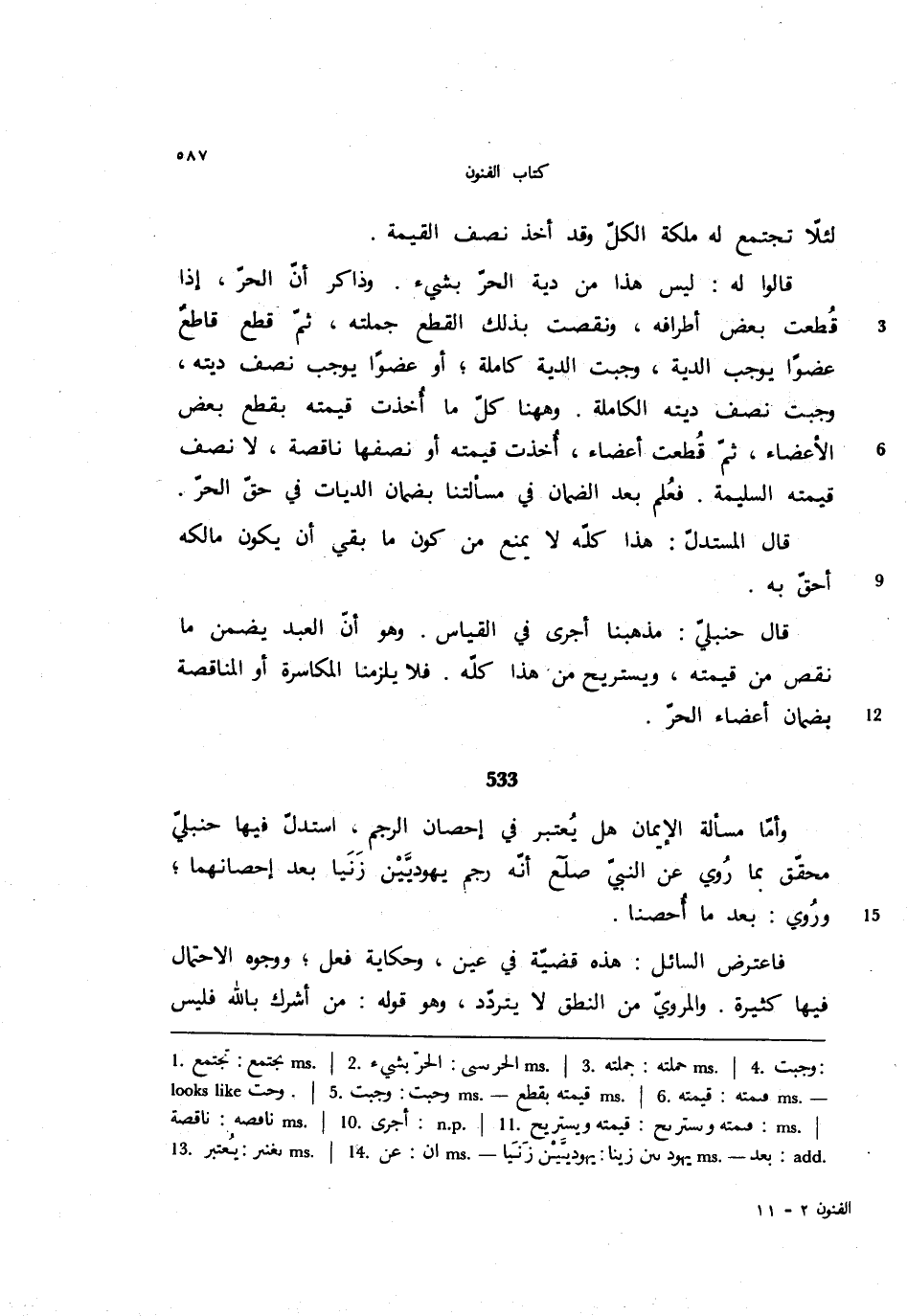 533 - وأما مسألة الإيمان هل يعتبر في إحصان الرجم, استدل فيها حنبلي محقق بما روي عن النبي صلى الله عليه وسلم أنه رجم يهوديين زنيا بعد إحصانهما؛ وروي: بعد ما أحصنا.