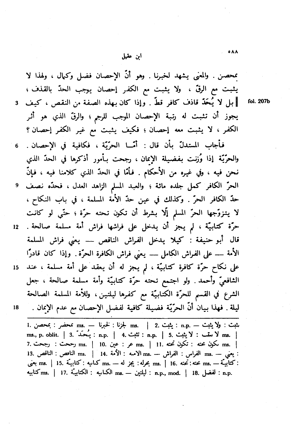 فأجاب المستدل بأن قال: أما الحرية, فكافية في الإحصان. والحرية إذا وزنت بفضيلة الإيمان, رجحت بأمور أذكرها في الحد الذي نحن فيه, وفي غيره من الأحكام. فأما في الحد الذي كلامنا فيه, فإن الحر الكافر كمل جلدة مائة؛ والعبد المسلم الزاهد العدل, فحده نصف حد الكافر الحر. وكذلك في عين حد الأمة المسلمة, في باب النكاح, لا يتزوجها الحر المسلم إلا بشرط أن تكون تحته حرة؛ حتى لو كانت حرة كتابية, لم يجز أن يدخل على فراشها فراش أمة مسلمة صالحة.
