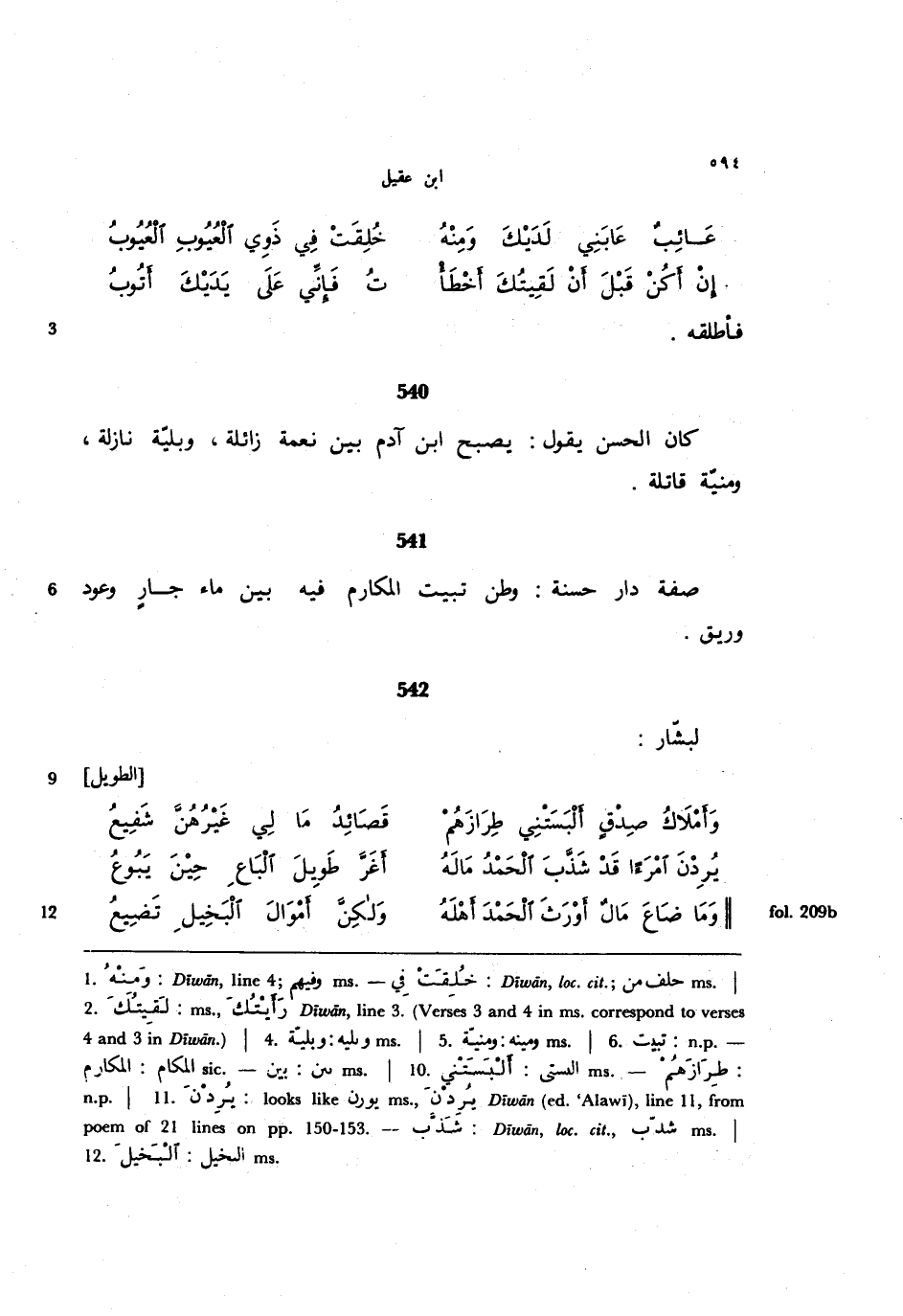 541 - صفة دار حسنة: وطن تبيت المكارم فيه بين ماء جار وعود وريق.