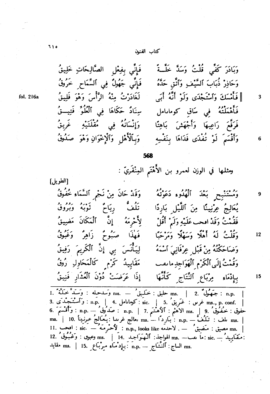 568 - ومثلها في الوزن لعمرو بن الأهتم المنقري: