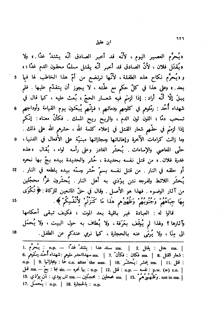 ((يحرم العصير اليوم، لأنه قد أخبر الصادق أنه يشتد غدًا.)) ولا ((يقتل فلان، لأن الصادق قد أخبر أنه يقتل مسلمًا محقون الدم غدًا؛ )) و ((يحرم نكاح هذه الطفلة، لأنها ترتضع من أم هذا الخاطب لها فيما بعد.)) وعلى هذا في كل حكم مع علته، لا يجوز أن يتقدم عليها. فلم يبق إلا أنه أراد: إذا لزمتم فيه شعار الحج، بعث عليه، كما قال في شهداء أحد: رملوهم في كلومهم ودمائهم؛ فإنهم يبعثون يوم القيامة واأوداجهم تسحب دمًا؛ اللون لون الدم، والريح ريح المسك. فكأن معناه: إنكم إذا لزمتم في حقهم شعار القتل في إعلاء كلمة الله، حشرهم الله على ذلك. وما زالت كرامات الآخرة وإهاناتها ومجازاتها مبنية على الأفعال في الدنيا، حتى المعاصي والإساءات. يحشر الغادر وعلى رأسه لواء، يقال ((هذه غدرة فلان.)) من قتل نفس بحديدة، حشر والحديدة بيده بج بها نحره أو حلقه في النار. من قتل نفسه بسم حشر وسمه بيده يلطعه في النار. يحشر اللائط ولفرجه نتن يؤذي به أهل النار. يحشرون غرًا محلجين من آثار الوضوء. فهذا هو الأصل. وقال في حق المانعين للزكاة: {تكوى بها جباههم وجنوبهم وظهورهم هذا ما كنزتم لأنفسكم}.