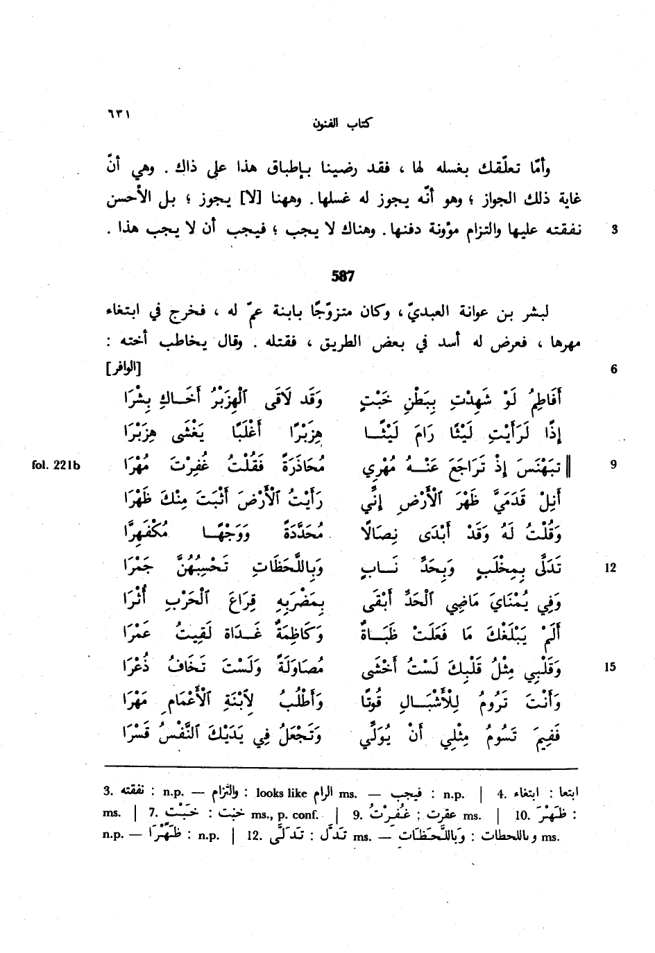 587 - لبشر بن عوانة العبدي، وكان متزوجاً بابنة عم له، فخرج في ابتغاء مهرها، فعرض له أسد في بعض الطريق، فقتله. وقال يخاطب أخته: