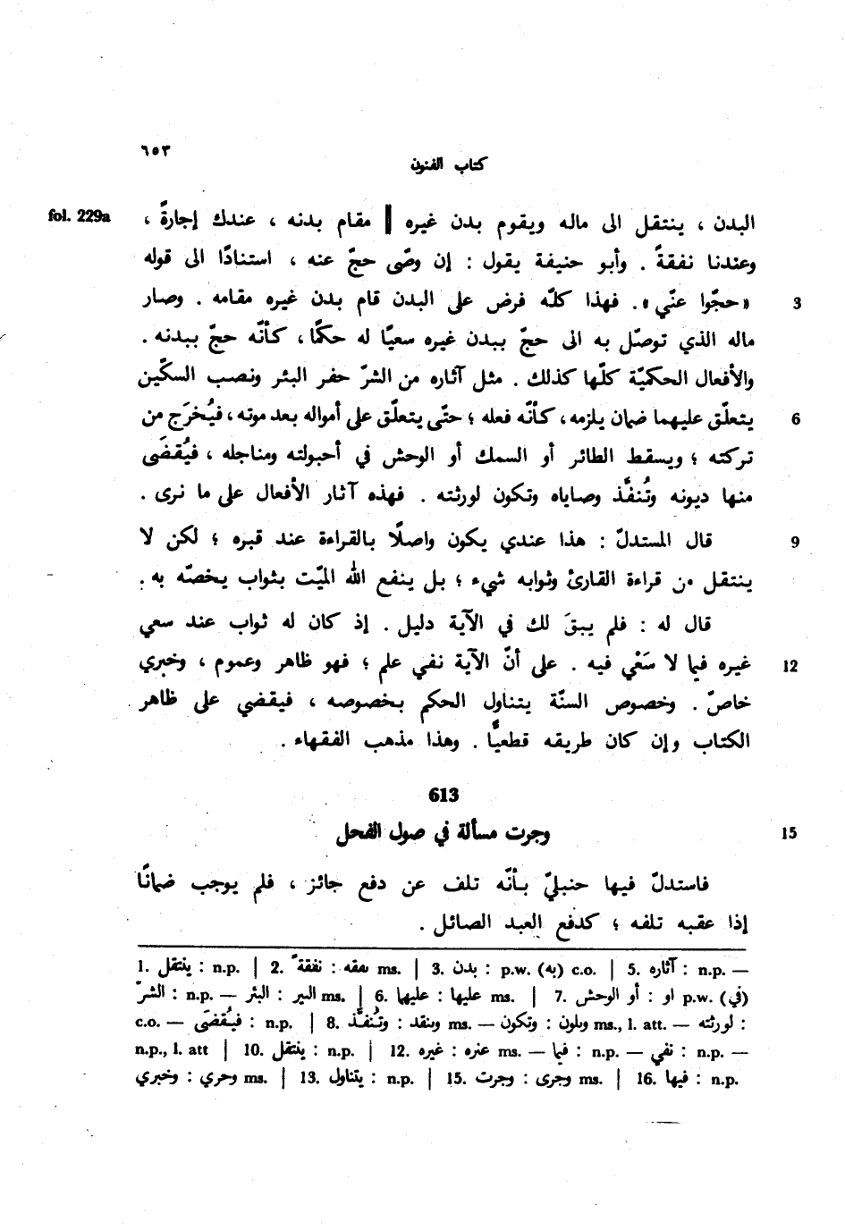 البدن، ينتقل إلى ماله ويقوم بدن غيره مقام بدنه، عندك إجارةً وعندنا نفقةً. وأبو حنيفة يقول: إن وصى حج عنه، استناداً إلى قوله ((حجوا عني)). فهذا كله فرض على البدن قام بدن غيره مقامه. وصار ماله الذي توصل به إلى حج ببدن غيره سعياً له حكماً، كأنه حج ببدنه. والأفعال الحكمية كلها كذلك. مثل آثاره من الشر حفر البئر ونصب السكين يتعلق عليهما ضمان يلزمه، كأنه فعله؛ حتى يتعلق على أمواله بعد موته، فيخرج من تركته؛ ويسقط الطائر أو السمك أو الوحش في أحبولته ومناجله، فيقضى منها ديونه وتنفذ وصاياه وتكون لورثته. فهذه آثار الأفعال على ما نرى.