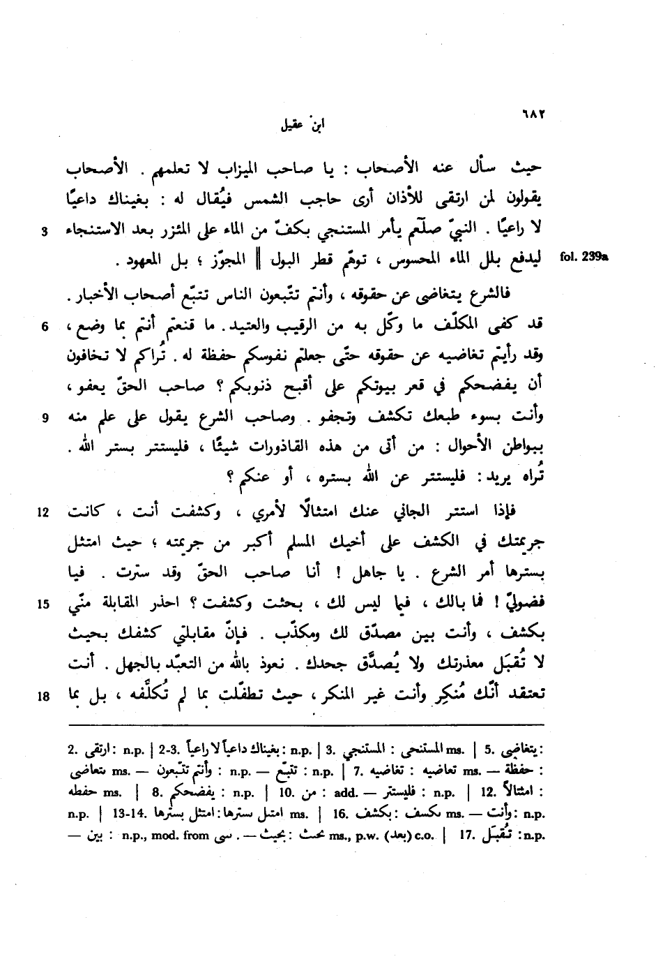 حيث سأل عنه الأصحاب: يا صاحب الميزاب لا تعلمهم. الأصحاب يقولون لمن ارتقى للأذان أرى حاجب الشمس فيقال له: بغيناك داعيًا لا راعيًا. النبي صلعم يأمر المستنجي بكف من الماء على المئزر بعد الاستنجاء ليدفع بلل الماء المحسوس، توهم قطر البول المحجوز، بل المعهود.