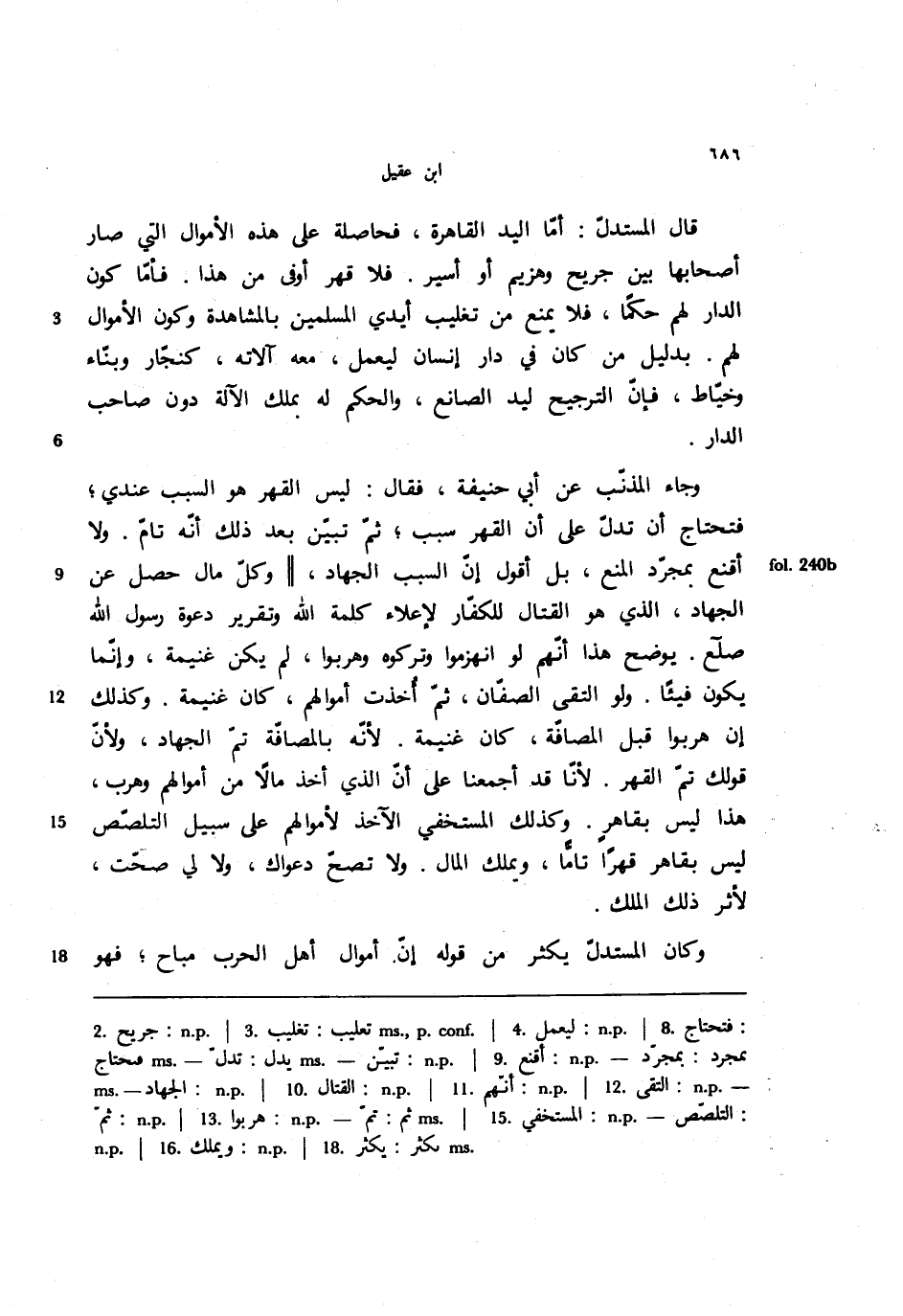 وكان المستدل يكثر من قوله إن أموال أهل الحرب مباح، فهو