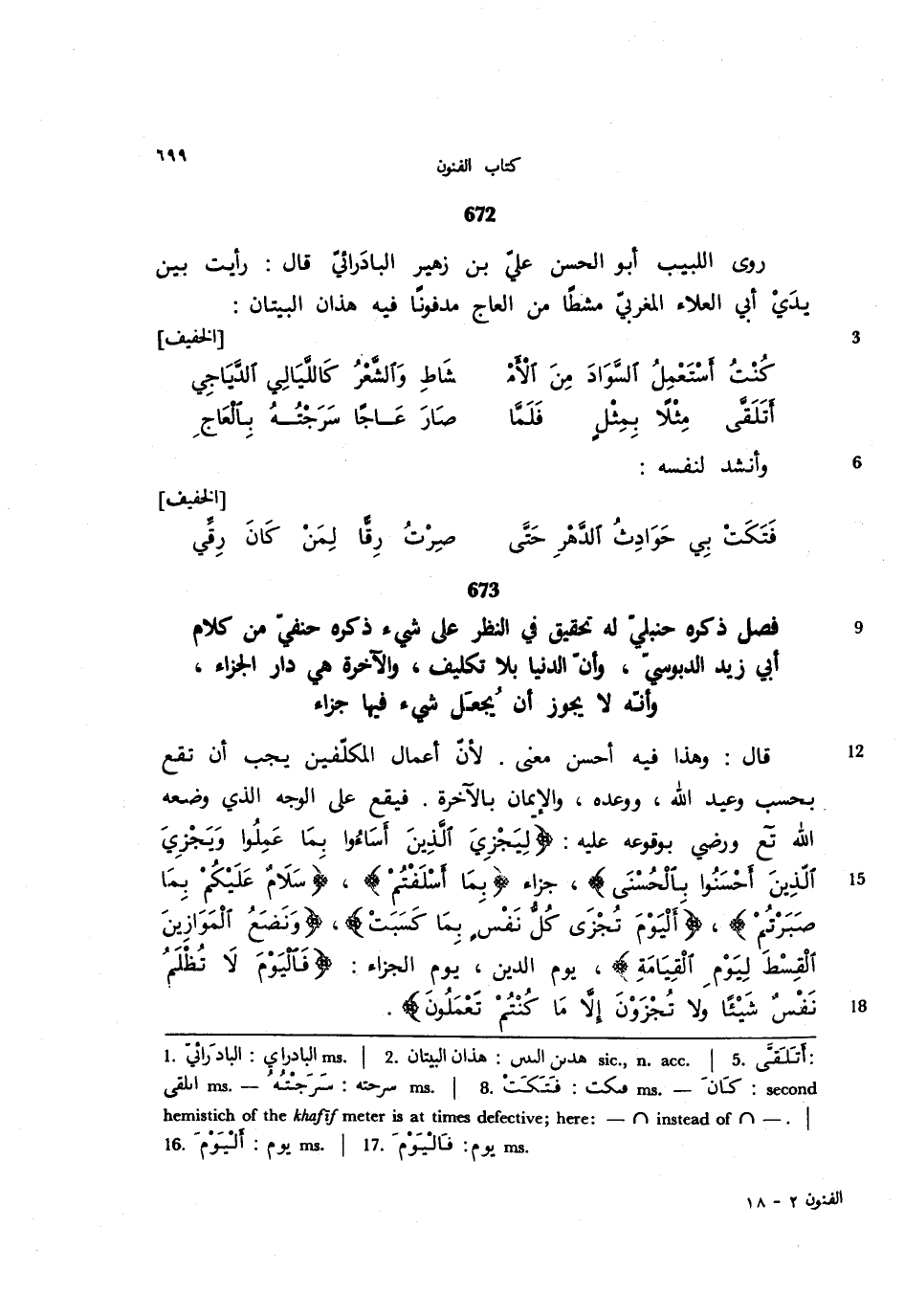 673 - فصل ذكره حنبلي له تحقيق في النظر على شيء ذكره حنفي من كلام