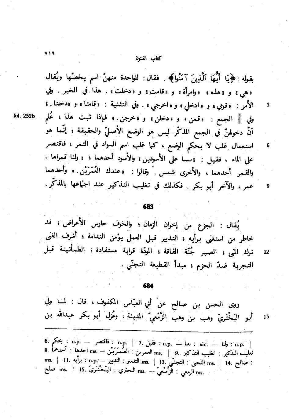 683 - يقال: الجزع من إخوان الزمان؛ والخوف حارس الأعراض؛ قد خاطر من استغنى برأيه؛ التدبير قبل العمل يؤمن الندامة؛ أشرف الغنى ترك المنى؛ الصبر جنة الفاقة؛ المودة قرابة مستفادة؛ الطمأنينة قبل التجربة ضد الحزم؛ مبدأ القطيعة التجني.