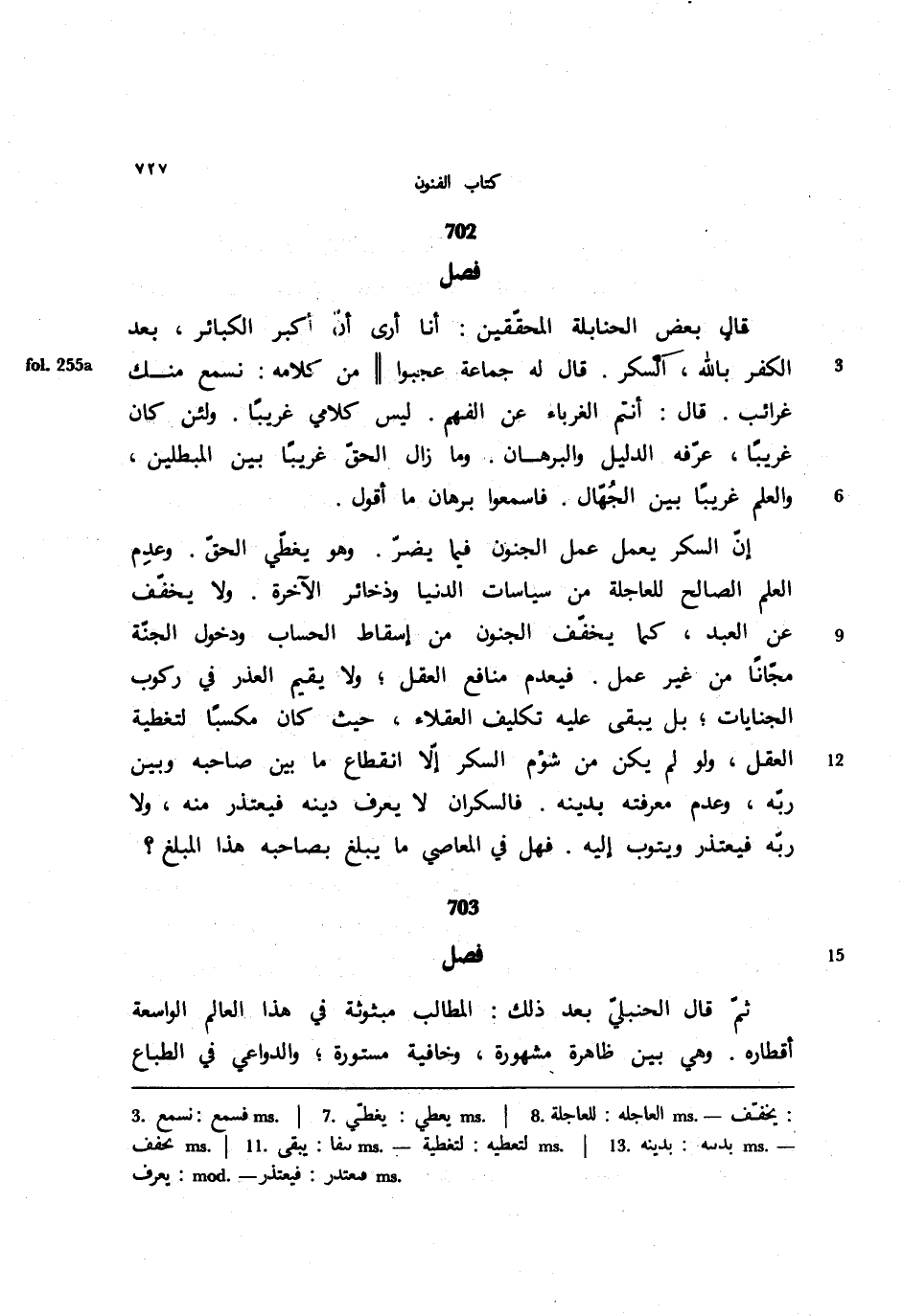 ثم قال الحنبلي بعد ذلك: المطالب مبثوثة في هذا العالم الواسعة أقطاره. وهي بين ظاهرة مشهورة، وخافية مستورة؛ والدواعي في الطباع