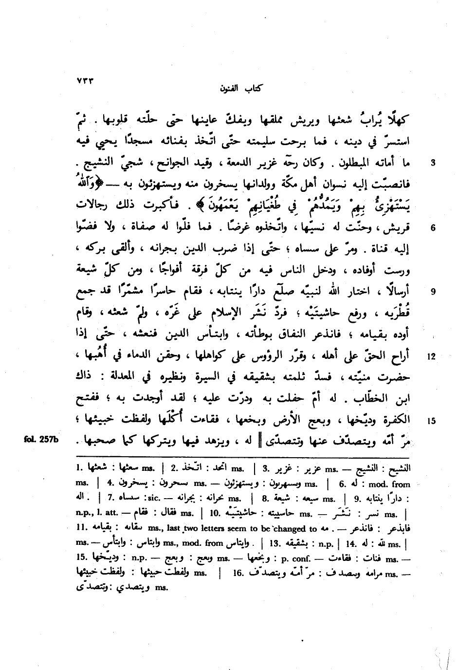كهلاً يراب شعثها ويريش مملقها ويفك عاينها حتى حلته قلوبها. ثم استسر في دينه، فما برحت سليمته حتى اتخذ بفنائه مسجدًا يحيي فيه ما أماته المبطلون. وكان رحه غزير الدمعة، وقيد الجوانح، شجي النشيج. فانصبت إليه نسوان أهل مكة وولدانها يسخرون منه ويستهزئون به - {والله يستهزئ بهم ويمدهم في طغيانهم يعمهون}. فأكبرت ذلك رجالات قريش، وحنت له نسيها، واتخذوه غرضًا. فما فلوا له صفاة، ولا فضوا إليه قناة. ومر على سساه؛ حتى إذا ضرب الدين بجرانه، وألقى بركه، ورست أوفاده، ودخل الناس فيه من كل فرقة أفواجًا، ومن كل شيعة أرسالاً، اختار الله لنبيه صلع دارًا ينتابه، فقام حاسرًا مشمرًا قد جمع قطريه، ورفع حاشيتيه؛ فرد نشر الإسلام على غره، ولم شعثه، وقام أوده بقيامه؛ فانذعر النفاق بوطأته، وابتأس الدين فنعشه، حتى إذا أراح الحق على أهله، وقرر الرؤوس على كواهلها، وحقن الدماء في أهبها، حضرت منيته، فسد ثلمته بشقيقه في السيرة ونظيره في المعدلة: ذاك ابن الخطاب. له أم حفلت به ودرت عليه؛ لقد أوجدت به؛ ففتح الكفرة وديخها، وبعج الأرض وبخعها، فقاءت أكلها ولفظت خبيئها؛ مر أمره ويتصدف عنها وتتصدى له، ويزهد فيها ويتركها كما صحبها.