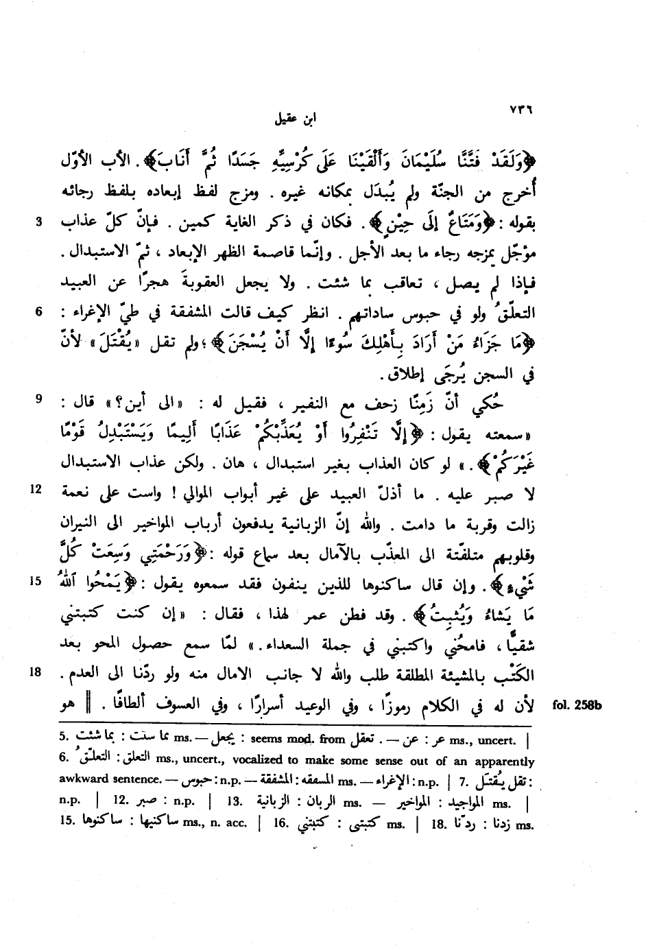 {ولقد فتنا سليمان وألقينا على كرسيه جسدًا ثم أناب}. الأب الأول أخرج من الجنة ولم يبدل بمكانه غيره. ومزج لفظ إبعاده بلفظ رجائه بقوله: {ومتاعٌ إلى حين}. فكان في ذكر الغاية كمين. فإن كل عذاب مؤجل يمزجه رجاء ما بعد الأجل. وإنما قاصمة الظهر الإبعاد، ثم الاستبدال. فإذا لم يصل، تعاقب بما شئت. ولا يجعل العقوبة هجرًا عن العبيد التعلق ولو في حبوس ساداتهم. انظر كيف قالت المشفقة في طي الإغراء: {وما جزاء من أراد بأهلك سوءًا إلا أن يسجن}، ولم تقل ((يقتل)) لأن في السجن يرجى إطلاق.