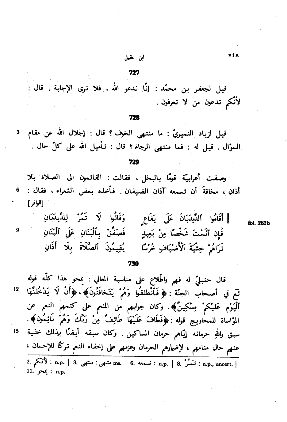 727 - قيل لجعفر بن محمد: إنا ندعو الله، فلا نرى الإجابة. قال: لأنكم تدعون من لا تعرفون.