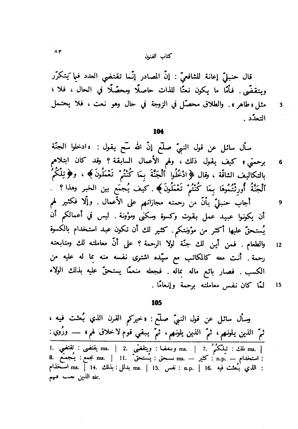 105 - وسأل سائل عن قول النبي صلع: "خيركم القرن الذي بعثت فيه، ثم الذين يلونهم، ثم الذين يلونهم، ثم يبقي قوم لا خلاق لهم" -وروي: