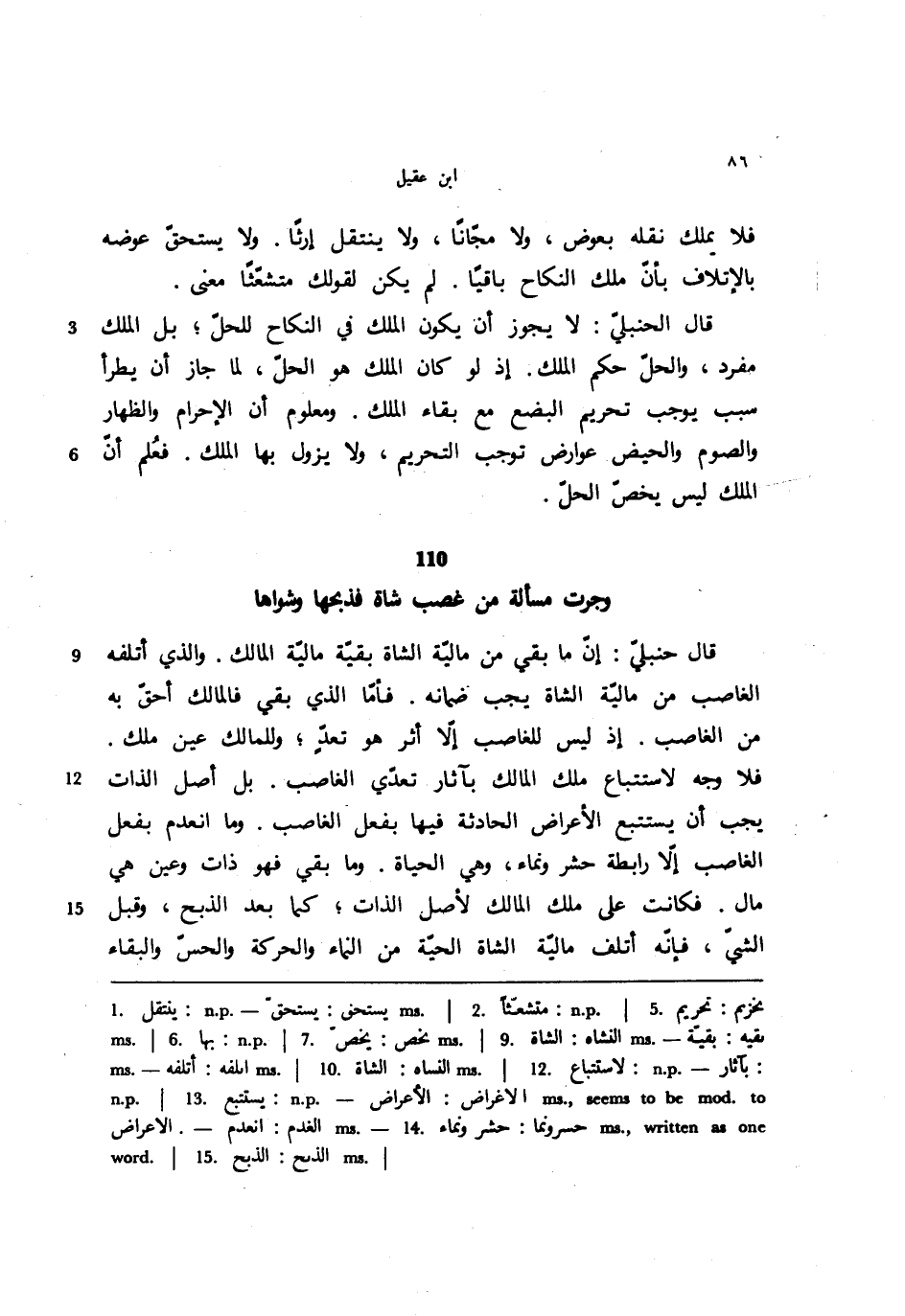 110 - وجرت مسألة من غضب شاة فذبحها وشواها