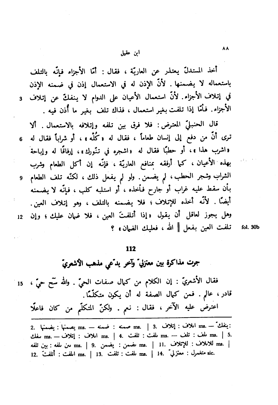 112 - جرت مذاكرة بين معتزلي وآخر يدعي مذهب الأشعري