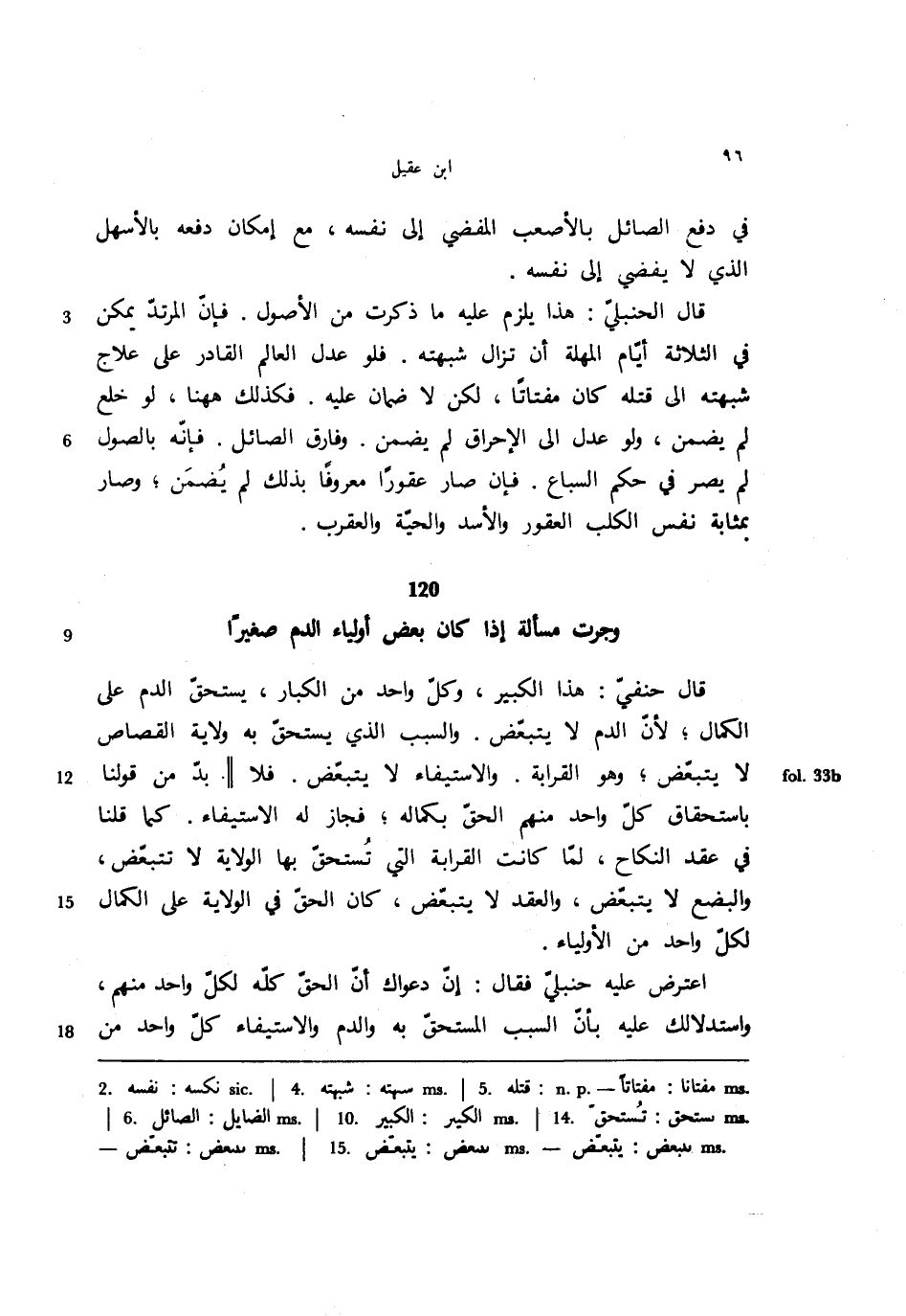120 - وجرت مسألة إذا كان بعض أولياء الدم صغيرًا