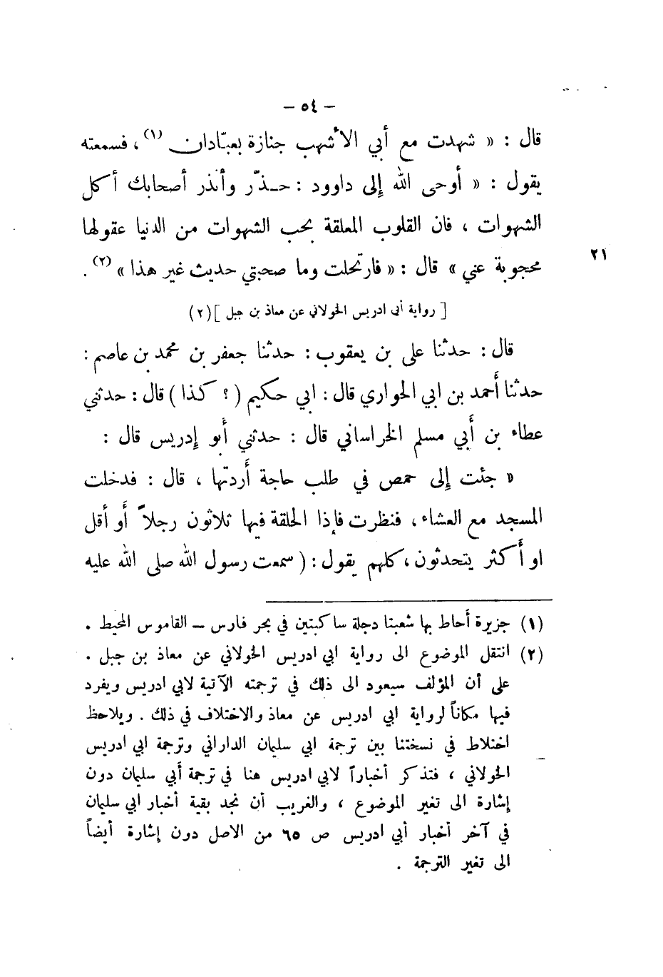 رواية أبي إدريس الخولاني عن معاذ بن جبل