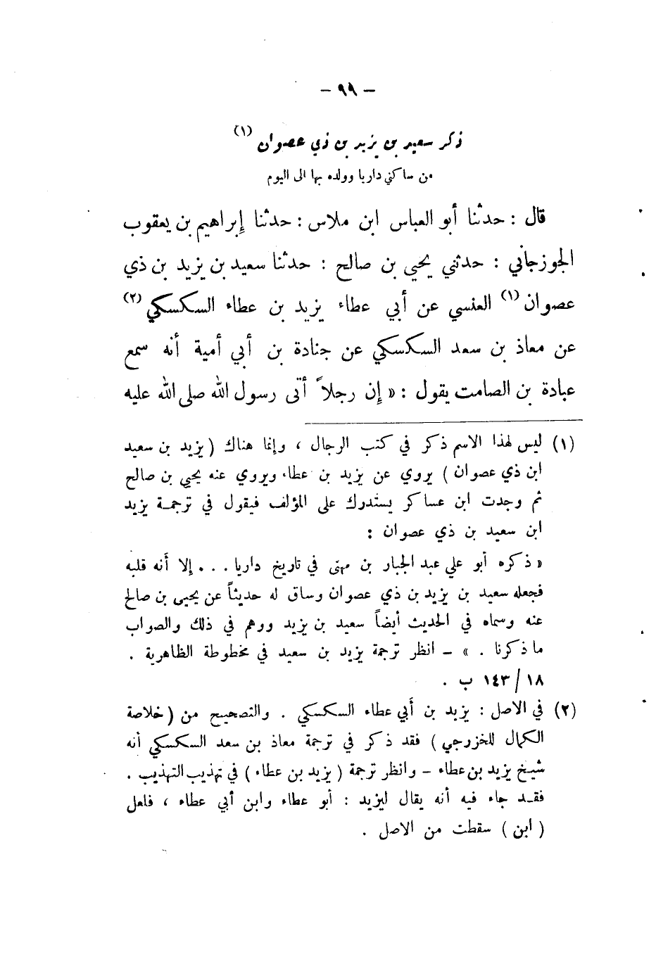 §ذِكْرُ سَعِيدِ بْنِ يَزِيدَ بْنِ ذِي عُصْوَانَ مِنْ سَاكِنِي دَارِيَّا، وَوَلَدُهُ بِهَا إِلَى الْيَوْمِ
