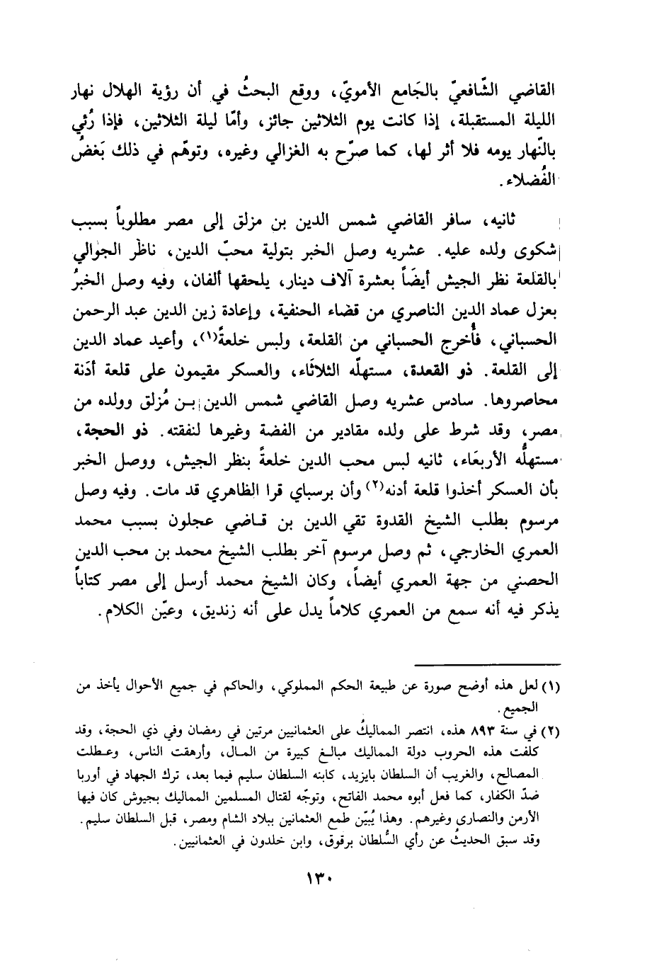 ذُو الْحجَّة مستهله الْأَرْبَعَاء ثَانِيه لبس محب الدّين خلعة بِنَظَر الْجَيْش وَوصل الْخَبَر بِأَن الْعَسْكَر أخذُوا قلعة أدنه وَأَن برسباي قرا الظَّاهِرِيّ قد مَاتَ وَفِيه وصل مرسوم بِطَلَب الشَّيْخ الْقدْوَة تَقِيّ الدّين بن قَاضِي عجلون بِسَبَب مُحَمَّد الْعمريّ الْخَارِجِي ثمَّ وصل مرسوم آخر بِطَلَب الشَّيْخ مُحَمَّد بن محب الدّين الحصني من جِهَة الْعمريّ أَيْضا وَكَانَ الشَّيْخ مُحَمَّد أرسل إِلَى مصر كتابا يذكر فِيهِ أَنه سمع من الْعمريّ كلَاما يدل على أَنه زنديق وَعين الْكَلَام