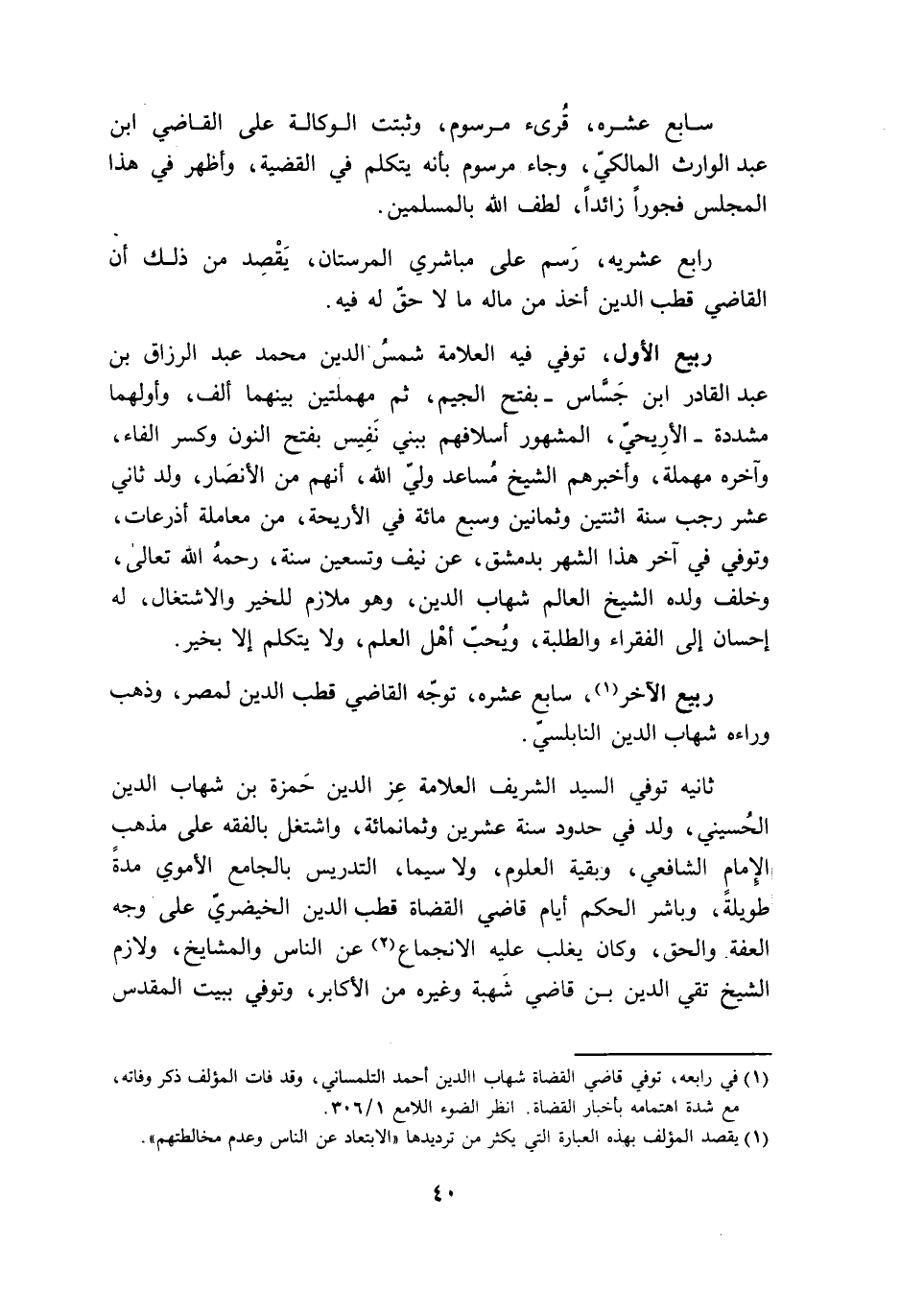 ربيع الآخر سَابِع عشره توجه القَاضِي قطب الدّين لمصر وَذهب وَرَاءه شهَاب الدّين النابلسي