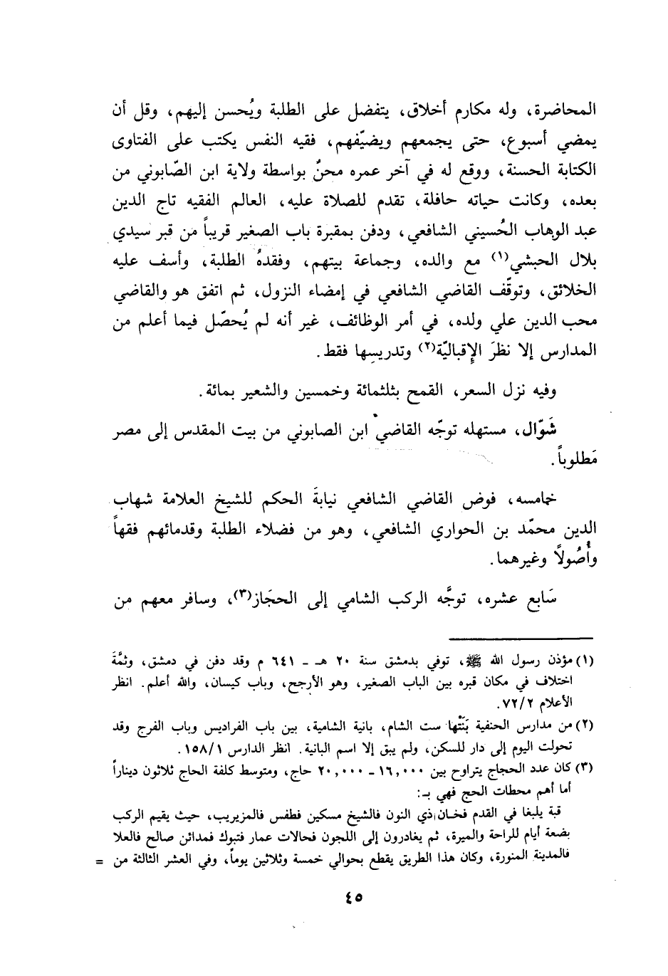 شَوَّال مستهله توجه القَاضِي ابْن الصَّابُونِي من بَيت الْمُقَدّس إِلَى مصر مَطْلُوبا