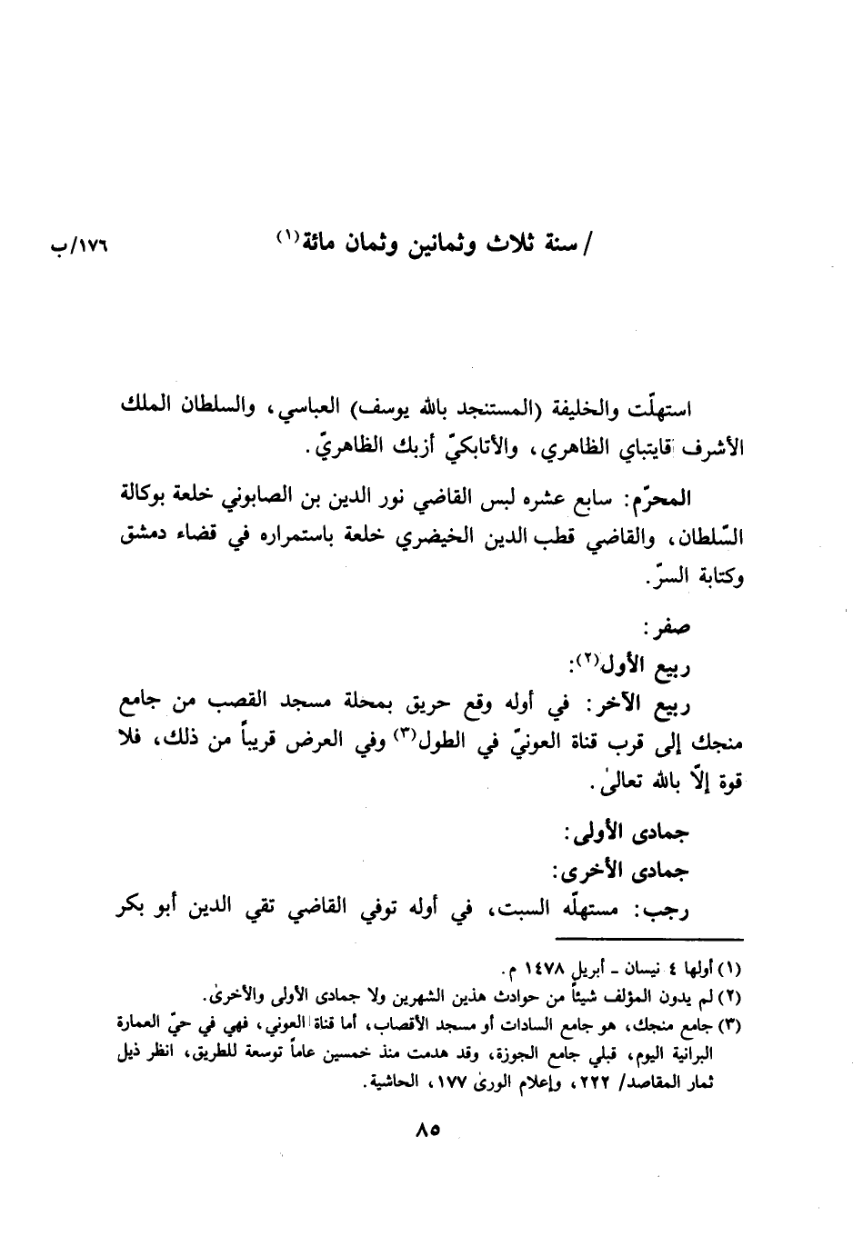 إستهلت والخليفة المستجد بِاللَّه يُوسُف العباسي وَالسُّلْطَان الْملك الْأَشْرَف قايتباي الظَّاهِرِيّ والأتابكي أزبك الظَّاهِرِيّ