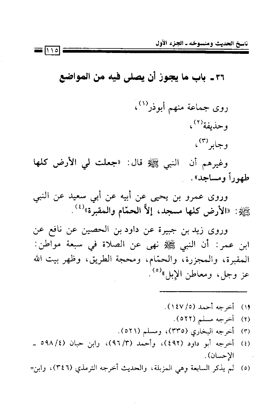 وروى عمرو بن يحيى عن أبيه عن أبي سعيد عن النبي صلى الله عليه وسلم: ((الأرض كلها مسجد، إلا الحمام والمقبرة)).