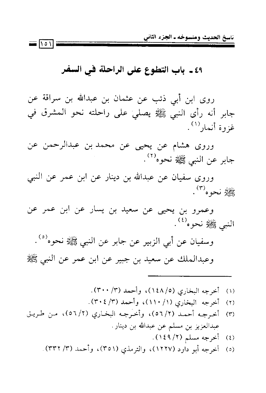روى ابن أبي ذئب عن عثمان بن عبد الله بن سراقة عن جابر أنه رأى النبي صلى الله عليه وسلم يصلي على راحلته نحو المشرق في غزوة أنمار.