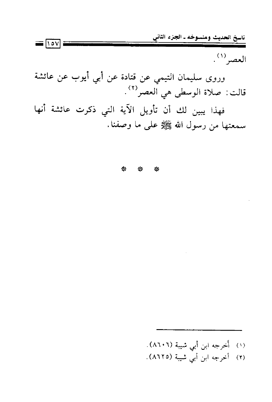 وروى سليمان التيمي عن قتادة عن أبي أيوب عن عائشة قالت: صلاة الوسطى هي العصر.