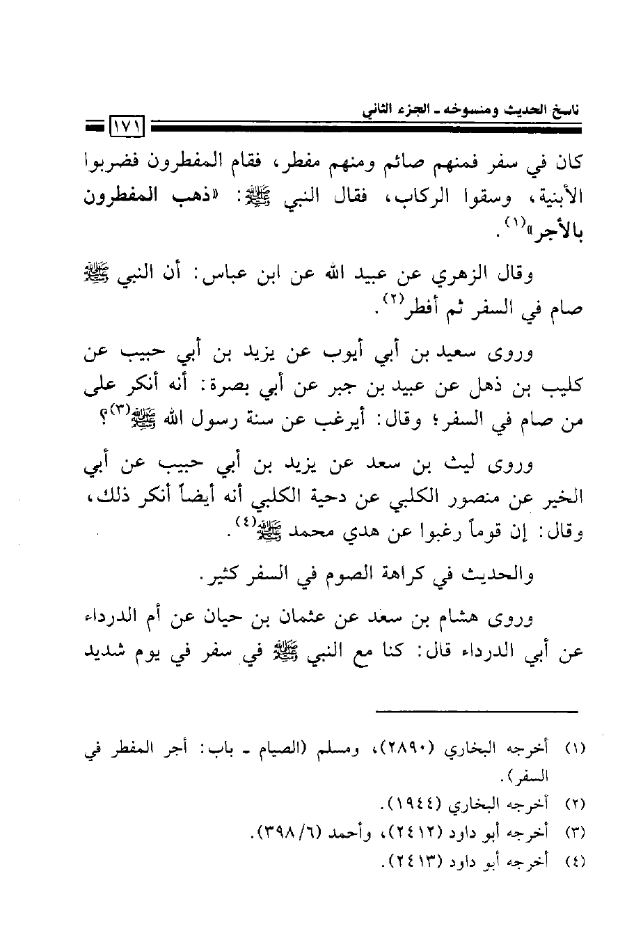وروى سعيد بن أبي أيوب عن يزيد بن أبي حبيب عن كليب بن ذهل عن عبيد بن جبير عن أبي بصرة: أنه أنكر على من صام في السفر؛ وقال: أيرغب عن سنة رسول الله صلى الله عليه وسلم؟